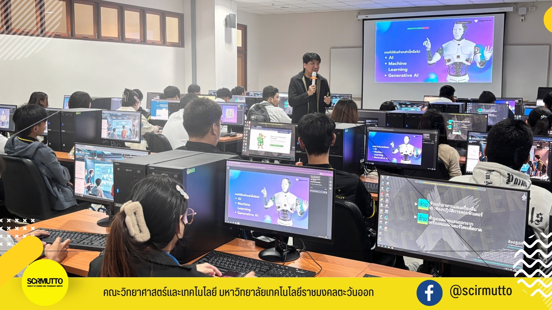 ให้บริการห้องปฏิบัติการวิทยาศาสตร์ ห้องคอมพิวเตอร์ ห้องบรรยาย ห้องประชุม อุปกรณ์พร้อมใช้งาน เช่น PC, IOT, Multimedia, Lab tools