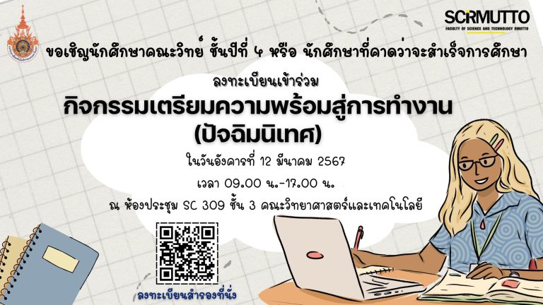 Highlightsกิจกรรมและบริการนักศึกษาข่าวประชาสัมพันธ์ ขอเชิญนักศึกษาปีสุดท้าย หรือคาดว่าจะสำเร็จการศึกษา เข้าร่วมกิจกรรมเตรียมความพร้อมสู่การทำงาน (ปัจฉิมนิเทศ)23/02/202423/02/2024