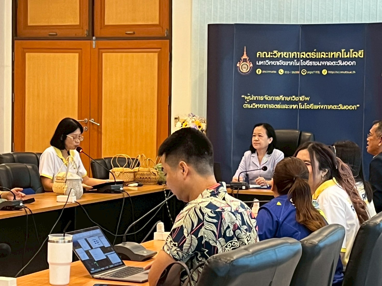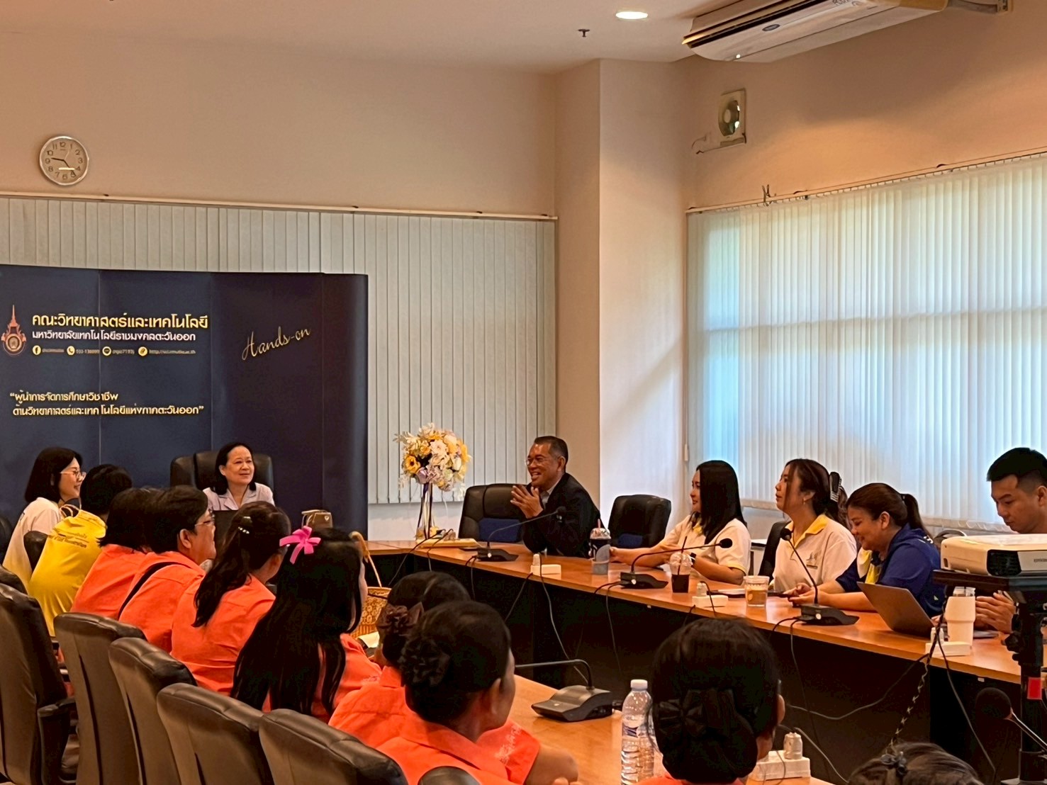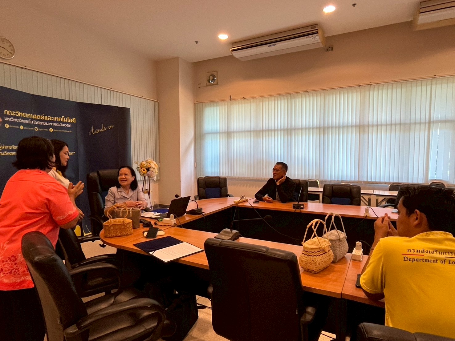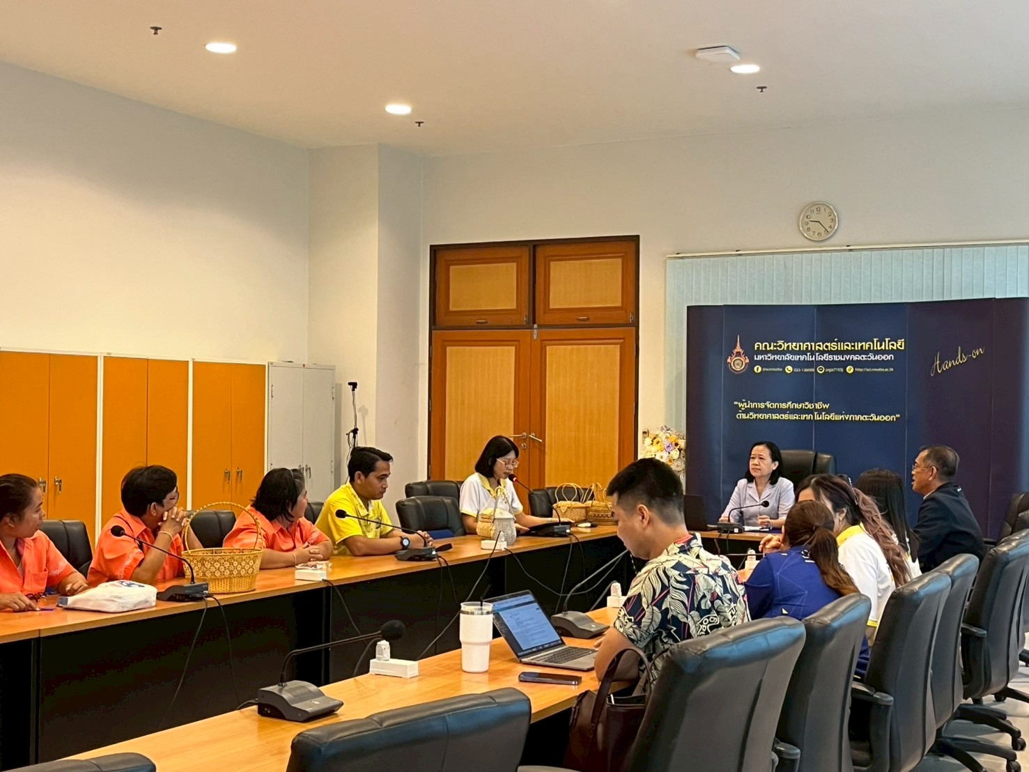 วันที่ 14 สิงหาคม 2568 คณะวิทยาศาสตร์และเทคโนโลยี นำโดย รศ.ดร.สุธัญญา พรหมสมบูรณ์ คณบดี และ ผศ.ดร.กรณัฏฐ์ นาคภิบาล รองคณบดีฝ่ายวิชาการและวิจัย พร้อมด้วย ผศ.ดร.รัชดา ไชยเจริญ หัวหน้าศูนย์บริการวิชาการนวัตกรรมและเทคโนโลยีสารสนเทศ ให้การต้อนรับ ผู้อำนวยการสำนักงานนิคมอุตสาหกรรมดับบลิวเอชเอ ชลบุรี 1 และ วิสาหกิจชุมชนรักสานบ้านบ่อวิน