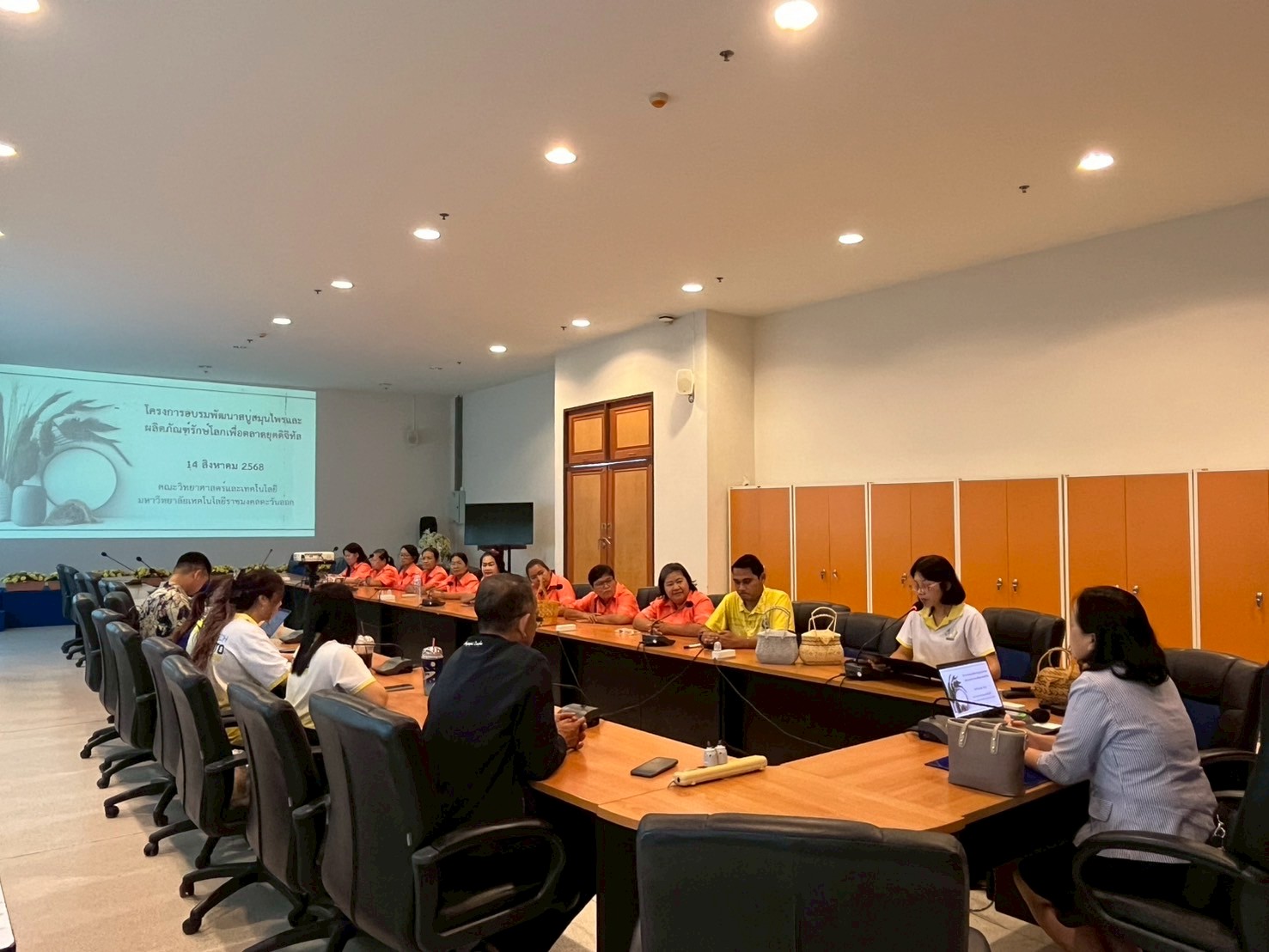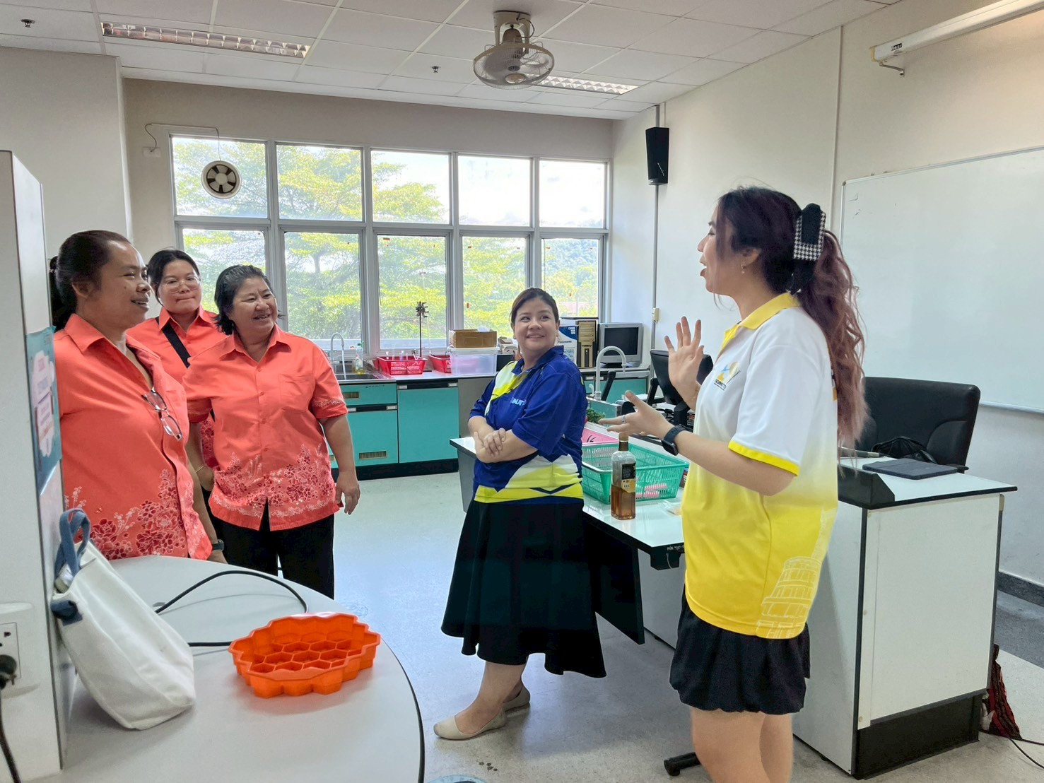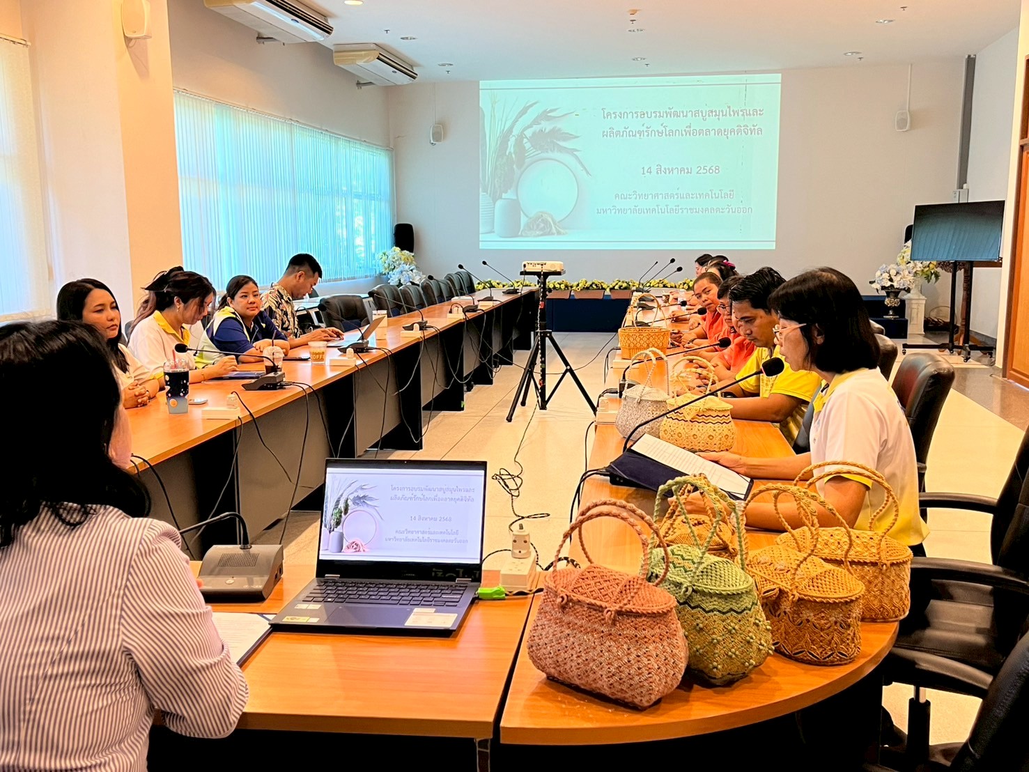 วันที่ 14 สิงหาคม 2568 คณะวิทยาศาสตร์และเทคโนโลยี นำโดย รศ.ดร.สุธัญญา พรหมสมบูรณ์ คณบดี และ ผศ.ดร.กรณัฏฐ์ นาคภิบาล รองคณบดีฝ่ายวิชาการและวิจัย พร้อมด้วย ผศ.ดร.รัชดา ไชยเจริญ หัวหน้าศูนย์บริการวิชาการนวัตกรรมและเทคโนโลยีสารสนเทศ ให้การต้อนรับ ผู้อำนวยการสำนักงานนิคมอุตสาหกรรมดับบลิวเอชเอ ชลบุรี 1 และ วิสาหกิจชุมชนรักสานบ้านบ่อวิน