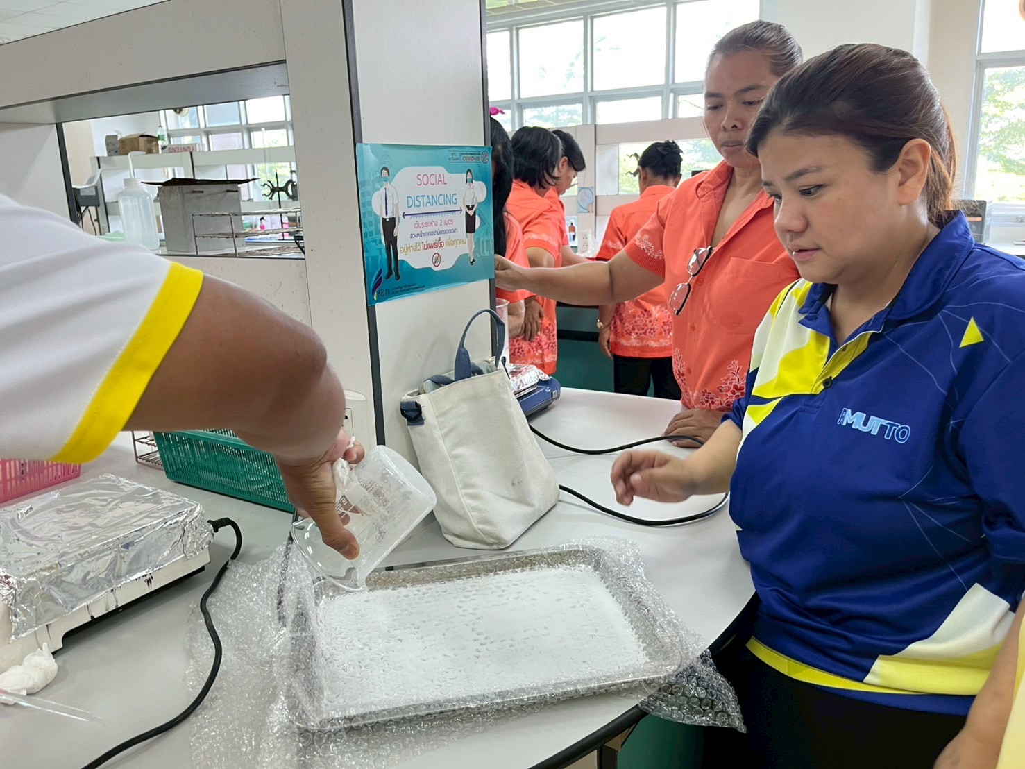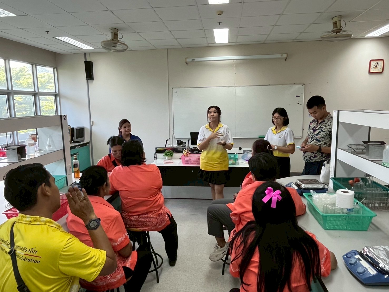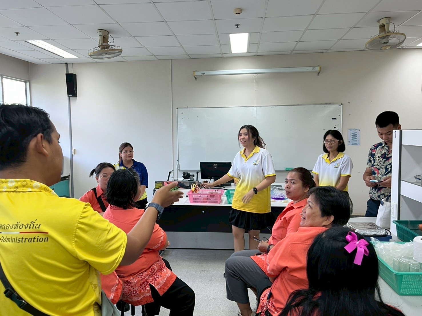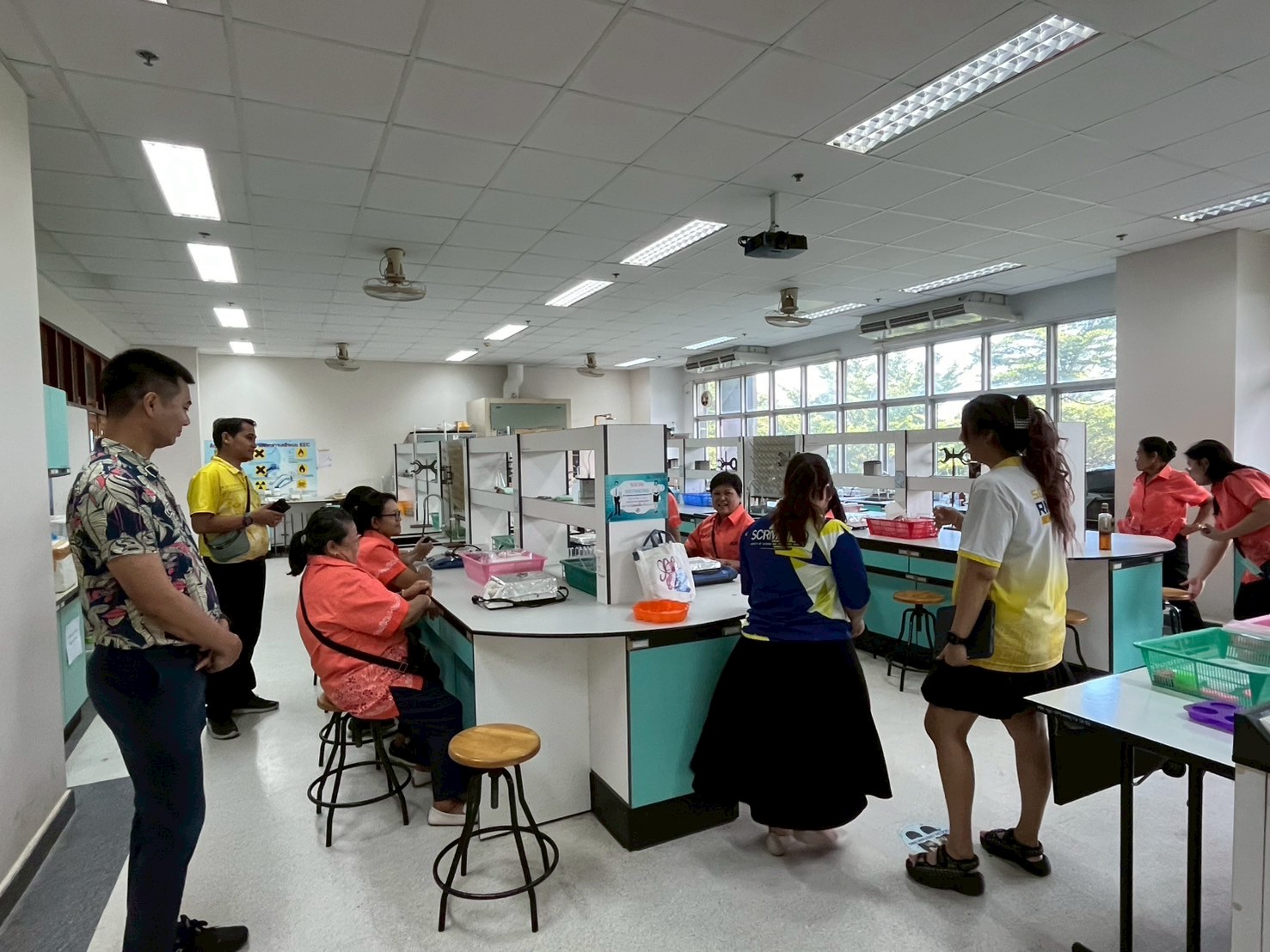 วันที่ 14 สิงหาคม 2568 คณะวิทยาศาสตร์และเทคโนโลยี นำโดย รศ.ดร.สุธัญญา พรหมสมบูรณ์ คณบดี และ ผศ.ดร.กรณัฏฐ์ นาคภิบาล รองคณบดีฝ่ายวิชาการและวิจัย พร้อมด้วย ผศ.ดร.รัชดา ไชยเจริญ หัวหน้าศูนย์บริการวิชาการนวัตกรรมและเทคโนโลยีสารสนเทศ ให้การต้อนรับ ผู้อำนวยการสำนักงานนิคมอุตสาหกรรมดับบลิวเอชเอ ชลบุรี 1 และ วิสาหกิจชุมชนรักสานบ้านบ่อวิน