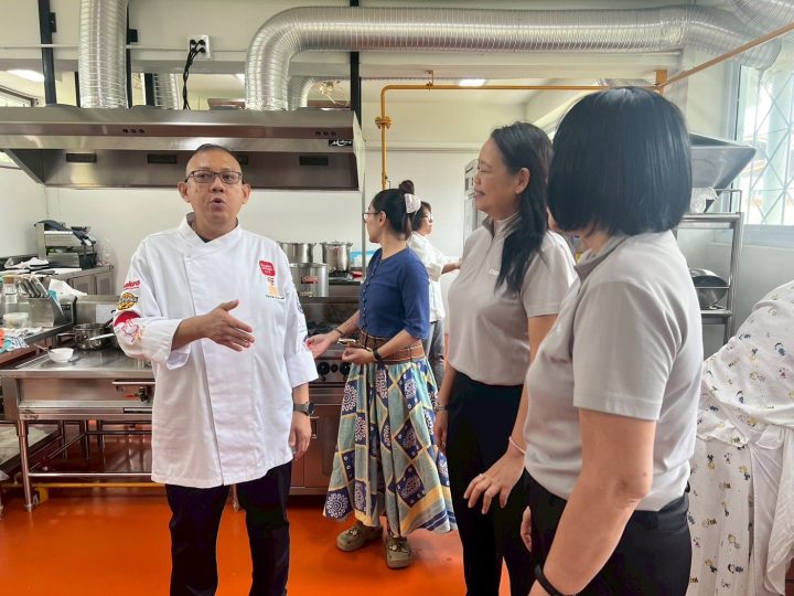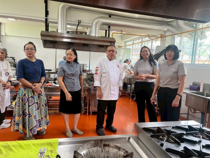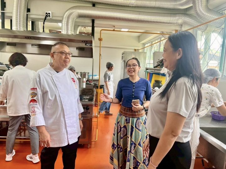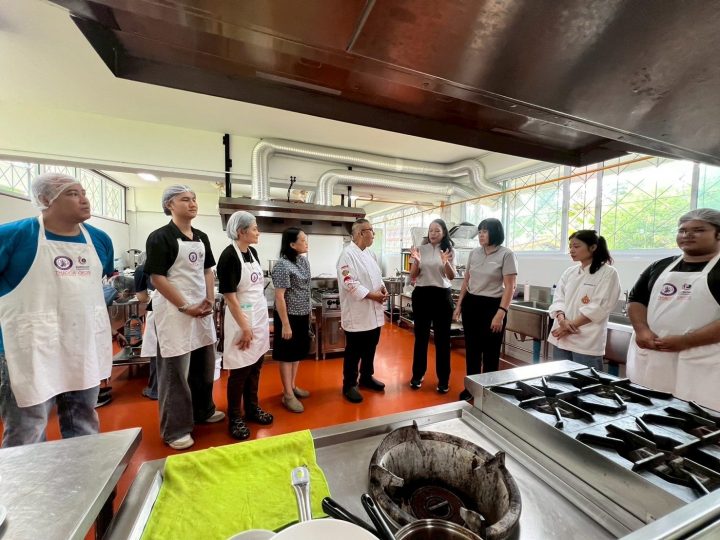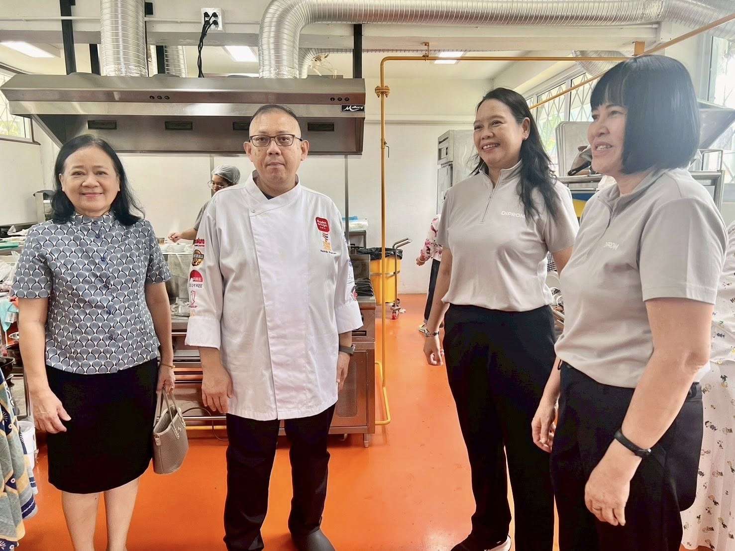 เมื่อวันที่ 27 ก.ย. 68 รศ.ดร.สุธัญญา พรหมสมบูรณ์ คณบดีคณะวิทยาศาสตร์และเทคโนโลยี ผศ.ปภากร ศรีสอน หัวหน้าหน่วยทดสอบสมรรถนะวิชาชีพด้านอาหาร น.ส.นันทนา เยื้องไกรงาม รษก.หัวหน้าสำนักงานคณบดี พร้อมกับคณะกรรมการโครงการฯ ร่วมต้อนรับ น.ส.หนึ่งหทัย ธรรมพิทักษ์ ผู้อำนวยการศูนย์ส่งเสริมอุตสาหกรรมภาคที่ 9 กรมส่งเสริมอุตสาหกรรม น.ส.ภารดี เสมอกิจ นักวิชาการอุตสาหกรรมชำนาญการพิเศษ น.ส.เรณู แซ่เตียว นักวิชาการอุตสาหกรรมปฏิบัติการ และ น.ส.สิเรียม นุ่งอาหลี นักวิชาการอุตสาหกรรมปฏิบัติการ ลงพื้นที่เพื่อตรวจเยี่ยมและประเมินผลการดำเนินโครงการอบรมเชฟอาหารไทยมืออาชีพ ภาคตะวันออก (Master Thai Chef Program) รุ่นที่ 3 ณ ห้องปฏิบัติการครัวร้อน สาขาพัฒนาผลิตภัณฑ์อุตสาหกรรมเกษตร คณะวิทยาศาสตร์และเทคโนโลยี มหาวิทยาลัยเทคโนโลยีราชมงคลตะวันออก พร้อมแลกเปลี่ยนแนวทางการปฏิบัติงานและการติดตามผลการเรียนออนไลน์ผ่านระบบ OFOS ของผู้เข้าอบรมให้มีมาตรฐานเป็นไปตามวัตถุประสงค์ของโครงการฯ