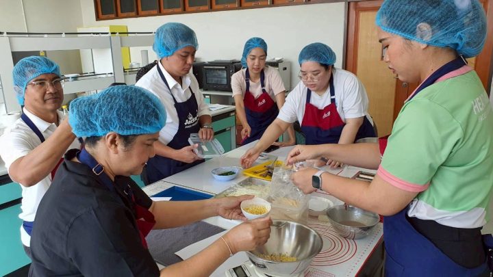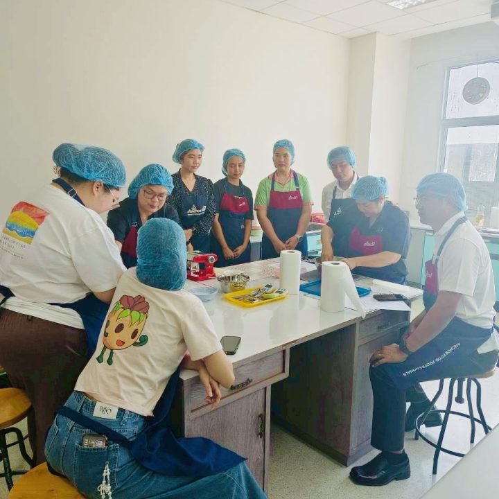 – “ปฏิบัติการเรียนรู้กระบวนการผลิตแบบครบวงจร” ตั้งแต่การทำแผ่นแป้งเกี๊ยวซ่าจากแป้งถั่วเหลือง การเตรียมไส้สูตร Plant-based ไปจนถึงการห่อ การทอด และการเตรียมน้ำจิ้ม