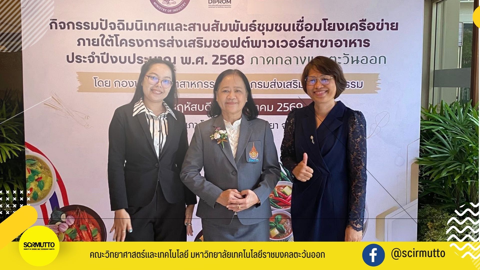 เมื่อวันที่ 15 มกราคม 2569 รองศาสตราจารย์ ดร.สุธัญญา พรหมสมบูรณ์ คณบดีคณะวิทยาศาสตร์และเทคโนโลยี มหาวิทยาลัยเทคโนโลยีราชมงคลตะวันออก (มทร.ตะวันออก) เขตพื้นที่บางพระ จ.ชลบุรี พร้อมด้วยบุคลากรสายวิชาการและสายสนับสนุน ได้แก่ ผู้ช่วยศาสตราจารย์ปภากร ศรีสอน และอาจารย์วลีพร วสิกรัตน์ อาจารย์ประจำหลักสูตรเทคโนโลยีการประกอบอาหารและการบริการ, นางสาวนันทนา เยื้องไกรงาม รักษาการแทนหัวหน้าสำนักงานคณบดี และนางสาวกนกรัตน์ เบญจมาศ เจ้าหน้าที่บริหารงานทั่วไป เข้าร่วมกิจกรรม “ปัจฉิมนิเทศและสานสัมพันธ์ชุมชนเชื่อมโยงเครือข่าย” ณ ห้องสำเภา โรงแรมเอเชียพัทยา จังหวัดชลบุรี