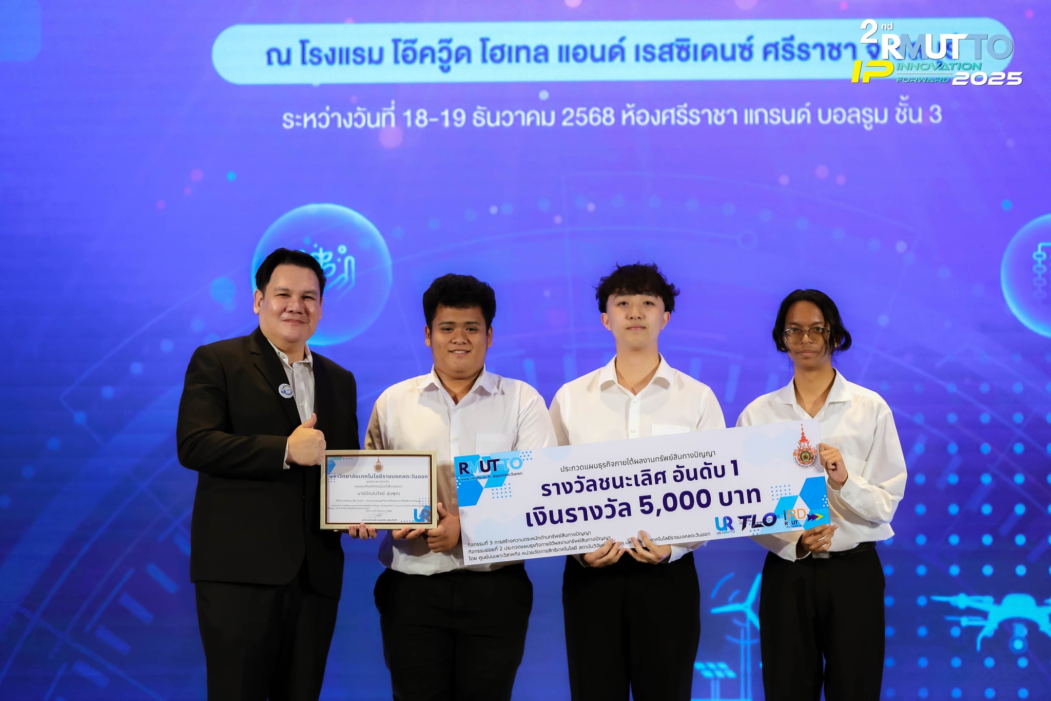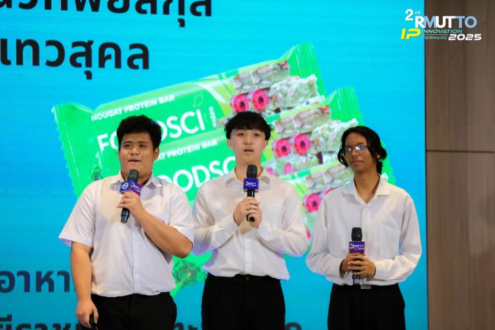 คณะวิทยาศาสตร์และเทคโนโลยี ขอแสดงความยินดีกับนักศึกษาสาขาวิชาวิทยาศาสตร์และเทคโนโลยีการอาหาร ทีม “FoodSciNova” ประกอบด้วย นายศุภกร เทวสุคล, นายปัณณวิชย์ ลุนพุฒ และ นายตฤณ นวทิพย์สกุล ในโอกาสได้รับรางวัลชนะเลิศ จากการประกวดแผนธุรกิจจากผลงานทรัพย์สินทางปัญญาของมหาวิทยาลัย ภายใต้กิจกรรม “2nd RMUTTO IP INNOVATION FORWARD 2025: เสนอแนวคิดสู่การเป็นผู้ประกอบการ”