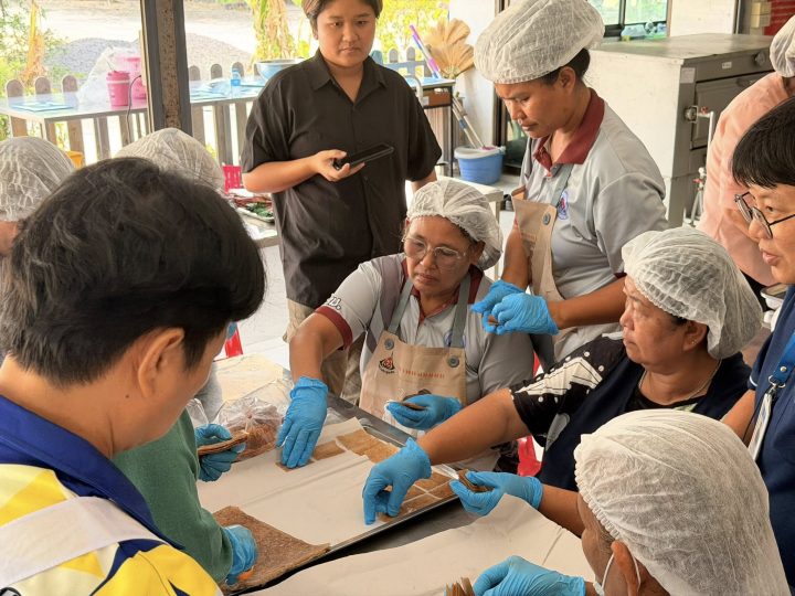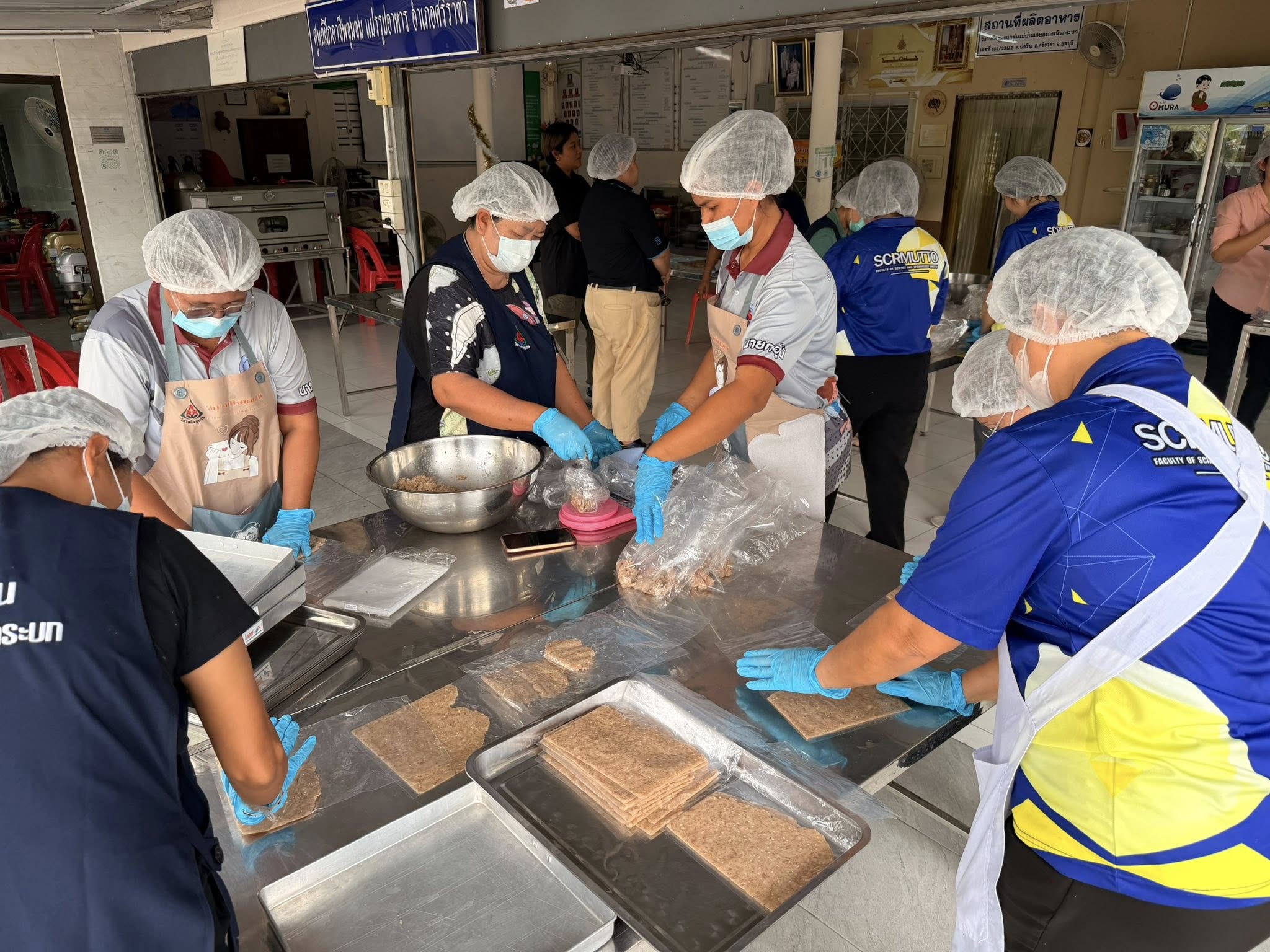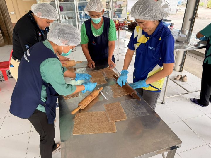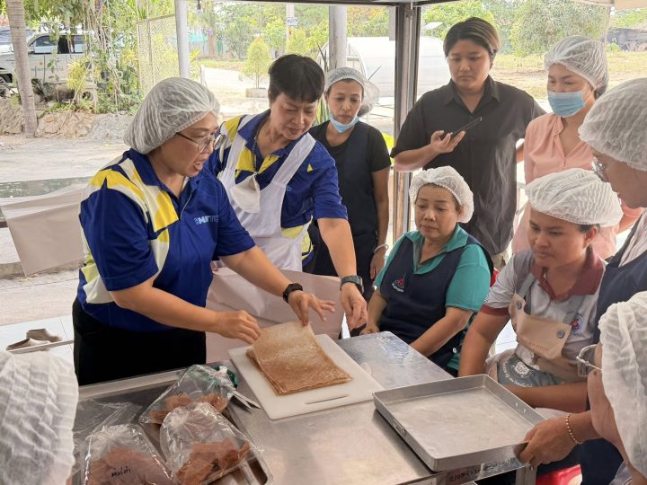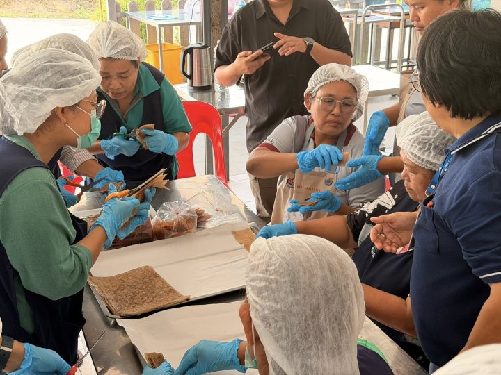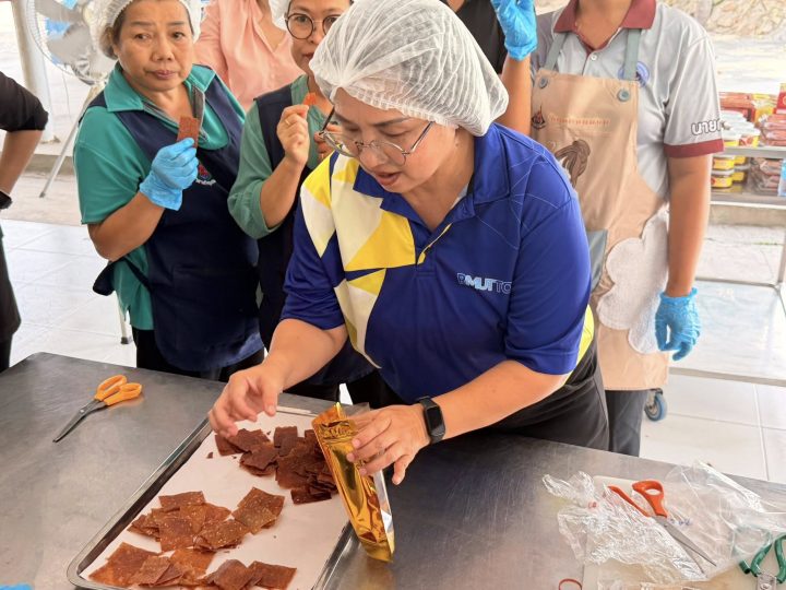 ทั้งนี้ ผู้เข้าร่วมอบรมจากชุมชนได้ลงมือปฏิบัติจริงในทุกขั้นตอน พร้อมทั้งได้ทดลองชิมผลิตภัณฑ์หมูแผ่นต้นแบบที่ทีมวิทยากรได้พัฒนาขึ้น 3 รสชาติ ได้แก่ รสธรรมดา รสงา และรสหม่าล่า เพื่อเป็นแนวทางในการนำไปพัฒนาต่อยอดเป็นผลิตภัณฑ์ที่เป็นเอกลักษณ์ของชุมชนต่อไป