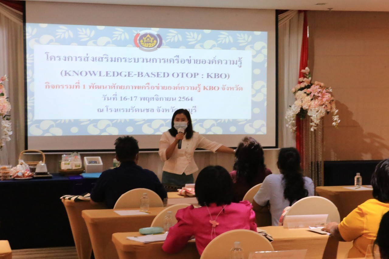 เมื่อวันที่ 16 พฤศจิกายน 2564 ผศ.ดร.สมทบ สันติเบ็ญจกุล และอ.ภานุมาศ บุญผดุง สังกัดคณะวิทยาศาสตร์และเทคโนโลยี คณะกรรมการเครือข่ายองค์ความรู้ KBO จ.ชลบุรี เข้าร่วมโครงการส่งเสริมกระบวนการเครือข่ายองค์ความรู้ (Knowledge-Based OTOP : KBO) กิจกรรมที่ 1 พัฒนาศักยภาพเครือข่ายองค์ความรู้ KBO จังหวัด ณ ห้องประชุมศรีรัตน ชั้น 2 โรงแรมรัตนชล อ.เมืองชลบุรี จ.ชลบุรี ที่จัดขึ้นโดย มีวัตถุประสงค์เพื่อส่งเสริมให้เครือข่ายองค์ความรู้ KBO จังหวัด เป็นศูนย์กลางในการให้ความช่วยเหลือและสนับสนุนการพัฒนาขีดความสามารถของผู้ผลิต ผู้ประกอบการ OTOP ในการพัฒนาผลิตภัณฑ์ให้มีมูลค่าเพิ่มมากขึ้น กลุ่มเป้าหมายจำนวน 40 คน ประกอบด้วย กลุ่มผู้ผลิตชุมชน 20 กลุ่ม/คน และคณะกรรมการเครือข่ายองค์ความรู้ KBO จังหวัดชลบุรี จำนวน 20 คน ดำเนินการระหว่างวันที่ 16 – 17 พฤศจิกายน 2564
