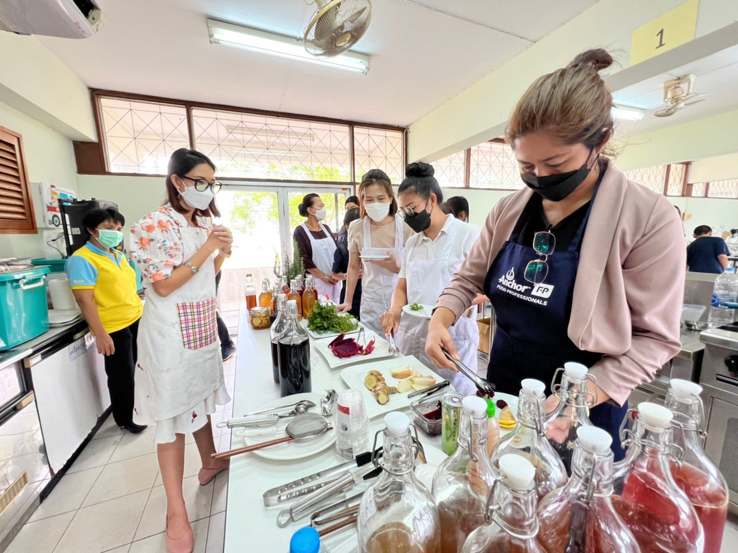 โดยมี อาจารย์อนันทญา แสนสวัสดิ์ และผู้ช่วยศาสตราจารย์วิจิตร์ วิโสรัมย์ เป็นวิทยากร บรรยายเรื่องราวของเครื่องดื่มคอมบูชาตั้งแต่เริ่มต้นทำหัวเชื้อจนจบกระบวนการได้เป็นเครื่องดื่มสุขภาพ หลักการสำคัญ ประโยชน์ การผลิตคอมบูชาและหัวเชื้อ SCOBY ปฏิบัติการการผลิตเครื่องดื่มคอมบูชา พร้อมทั้งคำแนะนำแก่ผู้เข้าอบรมในการสร้างสรรค์ประยุกต์เมนูเครื่องดื่มคอมบูชาด้วยตนเองให้มีความพิเศษเฉพาะไม่เหมือนใคร มีการแบ่งกลุ่มลงมือฝึกปฏิบัติ โดยวิทยากรให้คำแนะนำและนำฝึกปฏิบัติแต่ละกลุ่ม