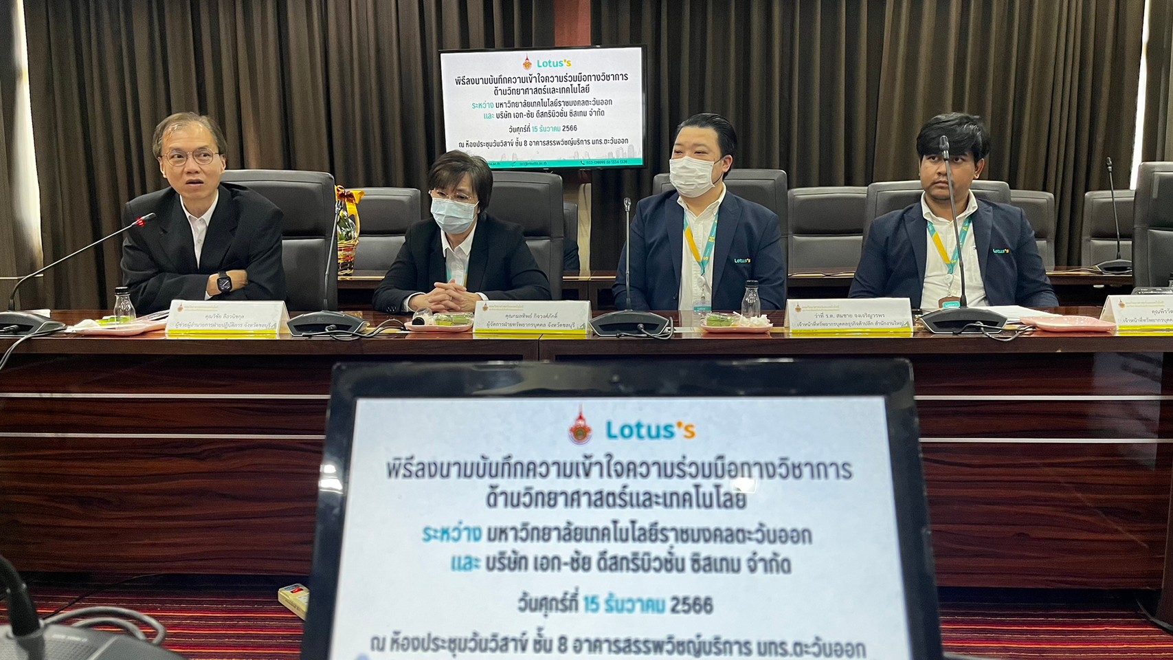 วันที่ 15 ธันวาคม 2566 มหาวิทยาลัยเทคโนโลยีราชมงคลตะวันออก โดย คณะวิทยาศาสตร์และเทคโนโลยี ผนึกกำลัง กับ บริษัท เอก-ชัย ดีสทริบิวชั่น ซิสเทม จำกัด (สำนักงานใหญ่โลตัส) ลงนามบันทึกความเข้าใจความร่วมมือทางวิชาการด้านวิทยาศาสตร์และเทคโนโลยี