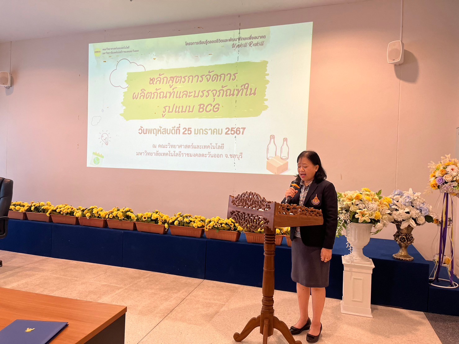 เมื่อวันที่ 25 มกราคม 2567 รองศาสตราจารย์ ดร.สุธัญญา พรหมสมบูรณ์ คณบดีคณะวิทยาศาสตร์และเทคโนโลยี เป็นประธานเปิดโครงการเรียนรู้ตลอดชีวิตและพัฒนาทักษะเพื่ออนาคต(upskill/reskill) กิจกรรมการจัดการผลิตภัณฑ์และบรรจุภัณฑ์ โดยมีผศ.ดร.กรณัฏฐ์ นาคภิบาล หัวหน้าโครงการ ได้กล่าวรายงานและวัตถุประสงค์โครงการเพื่อสนับสนุนการเรียนรู้ตลอดชีวิต การพัฒนาผลิตภัณฑ์และบรรจุภัณฑ์ตามแนวทาง BCG Model ด้วยการใช้วิทยาศาสตร์ เทคโนโลยีและนวัตกรรม สร้างมูลค่าเพิ่มและเพิ่มขีดความสามารถในการแข่งขัน