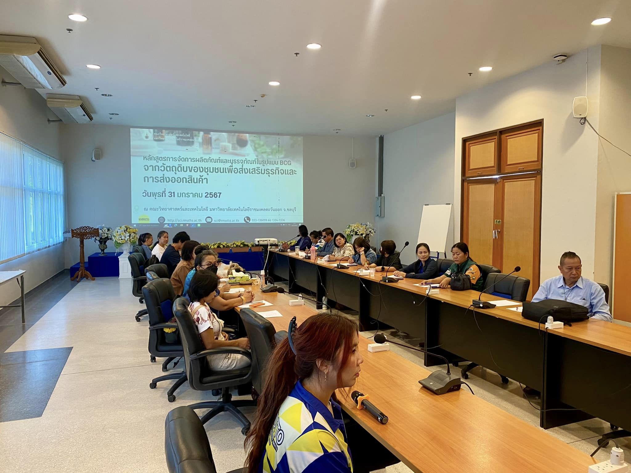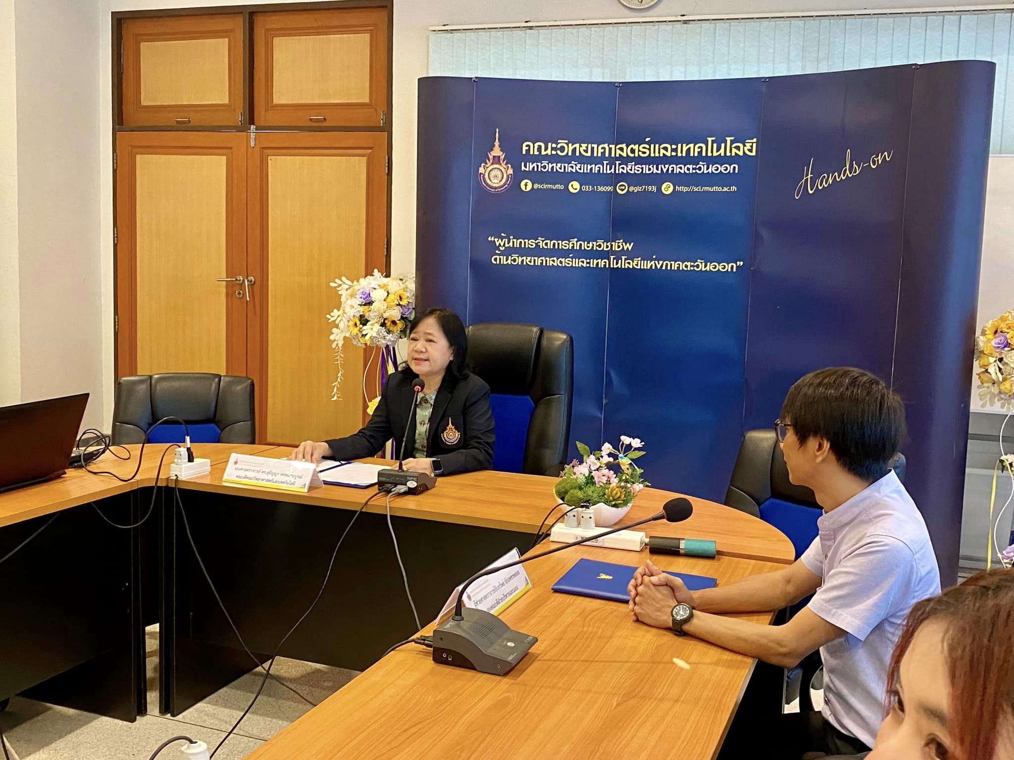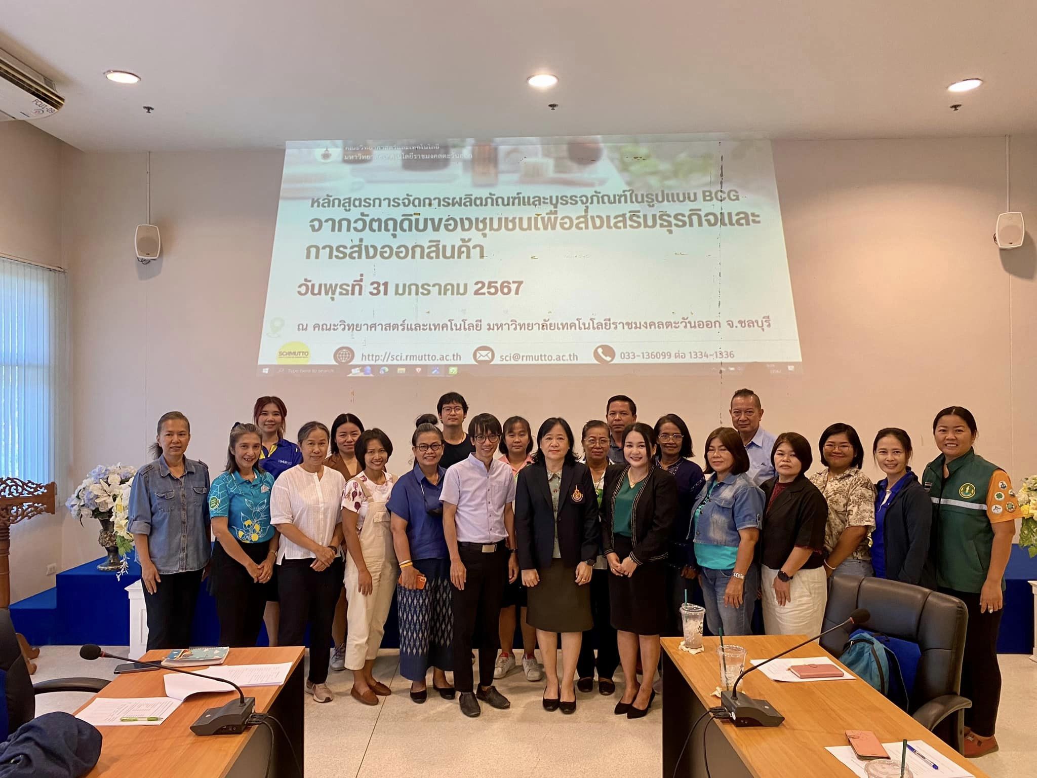 วันที่ 31 มกราคม 2567 รศ.ดร. สุธัญญา พรหมสมบูรณ์ คณบดีคณะวิทยาศาสตร์และเทคโนโลยี มหาวิทยาลัยเทคโนโลยีราชมงคลตะวันออก เป็นประธานเปิดโครงการเรียนรู้ตลอดชีวิตและพัฒนาทักษะเพื่ออนาคต (Upskill/Reskill) กิจกรรมกระบวนการผลิต การแปรรูปและการพัฒนาผลิตภัณฑ์ใหม่จากวัตถุดิบของชุมชนเพื่อส่งเสริมธุรกิจ และการส่งออกสินค้า (ผลิตภัณฑ์ความงาม) และมี ผศ.สินทรัพย์ นับเพชรพลอย รองคณบดีฝ่ายบริหารและแผน กล่าวรายงานถึงวัตถุประสงค์การจัดโครงการฯ