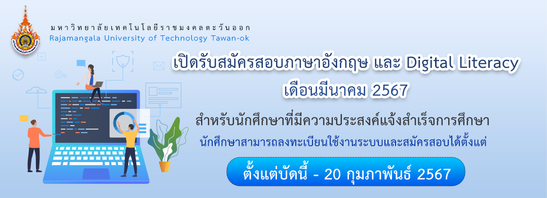 1.2 นักศึกษาสมัครสอบด้วยตนเอง ได้ที่ http://ietest.rmutto.ac.th/