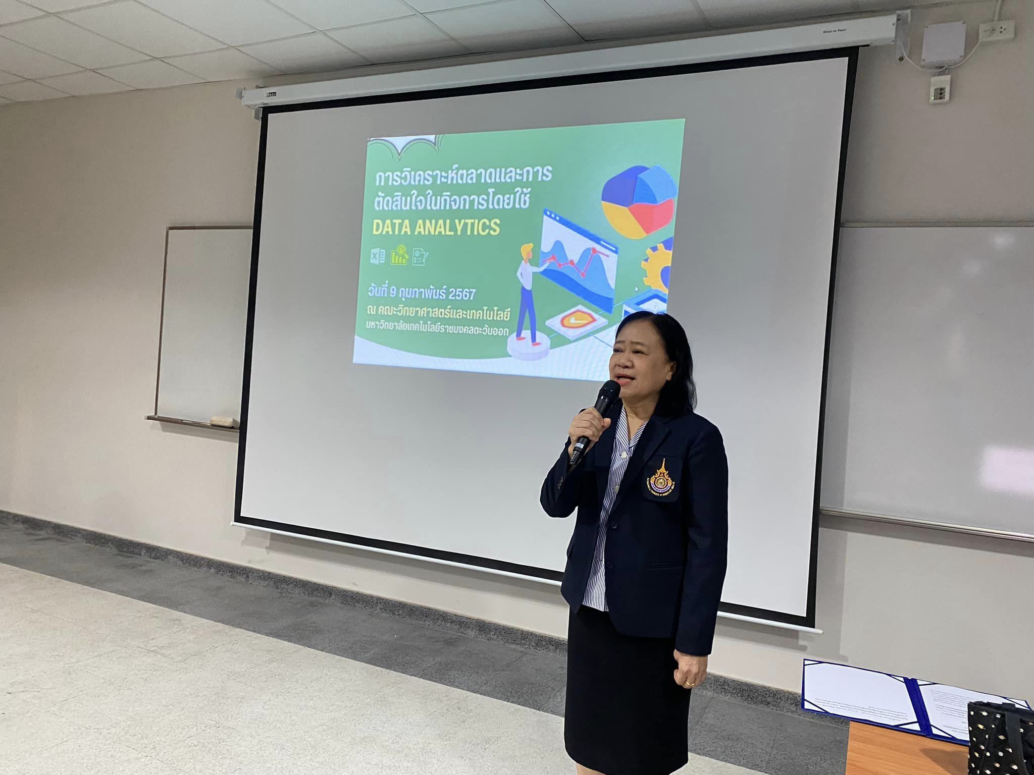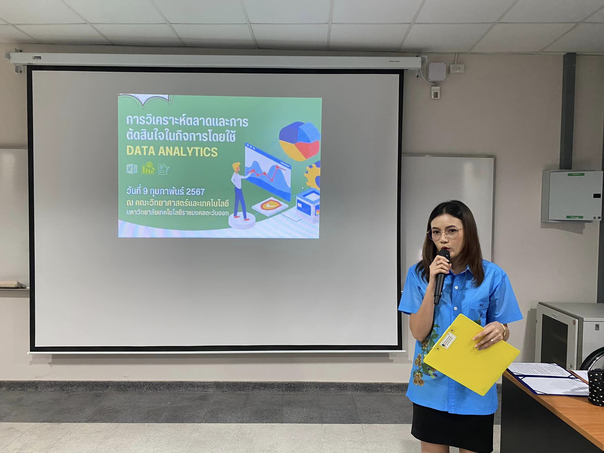 เมื่อวันที่ 9 กุมภาพันธ์ 2567 รศ.ดร. สุธัญญา พรหมสมบูรณ์ คณบดีคณะวิทยาศาสตร์และเทคโนโลยี มหาวิทยาลัยเทคโนโลยีราชมงคลตะวันออก เป็นประธานเปิดโครงการเรียนรู้ตลอดชีวิตและพัฒนาทักษะเพื่ออนาคต (Upskill/Reskill) กิจกรรมการวิเคราะห์ตลาดและการตัดสินใจในกิจการโดยใช้ Data Analytics และมี ผศ.ดร.กรณัฏฐ์ นาคภิบาล รองคณบดีฝ่ายวิชาการและวิจัย กล่าวรายงานถึงวัตถุประสงค์การจัดงาน