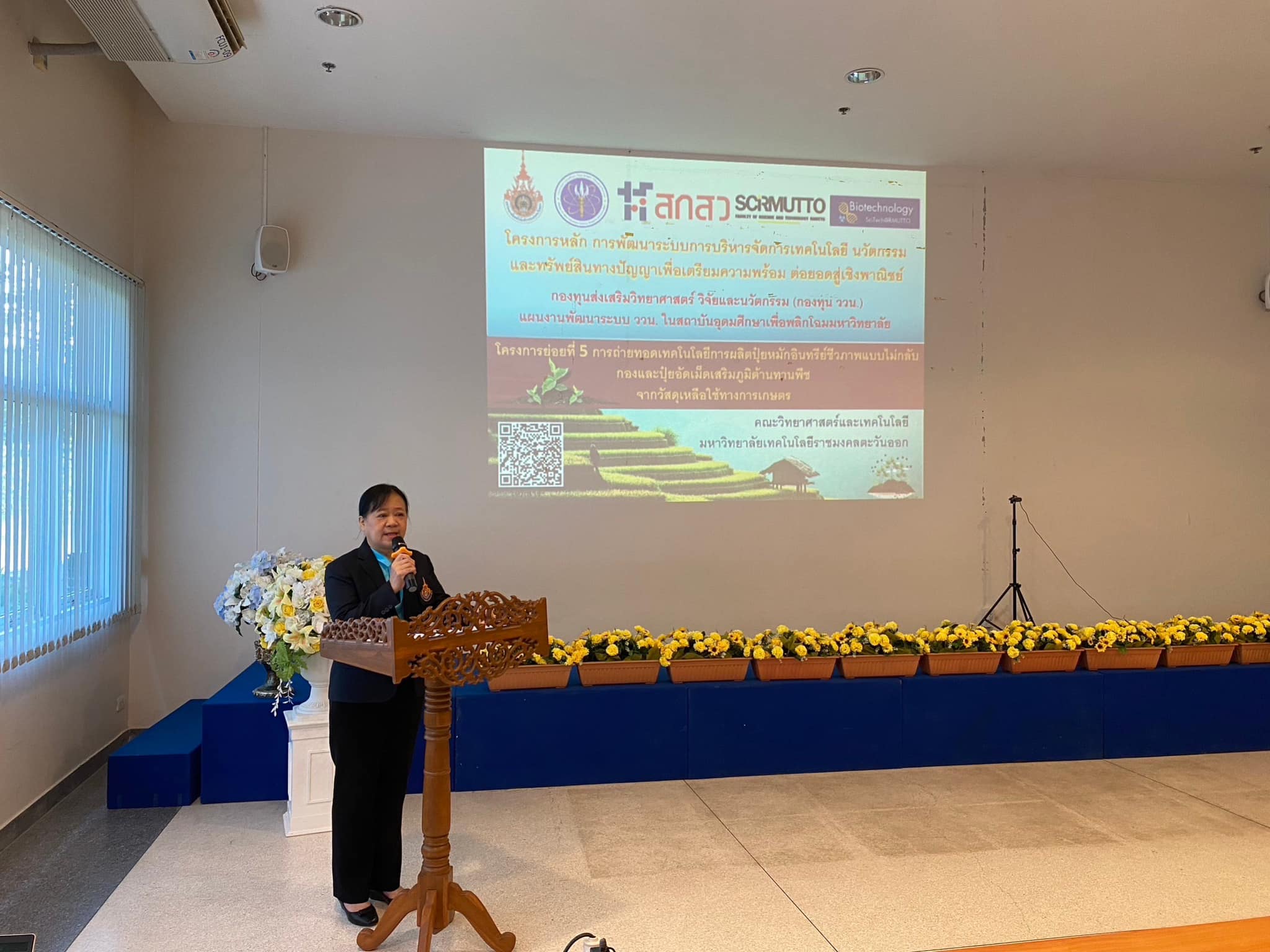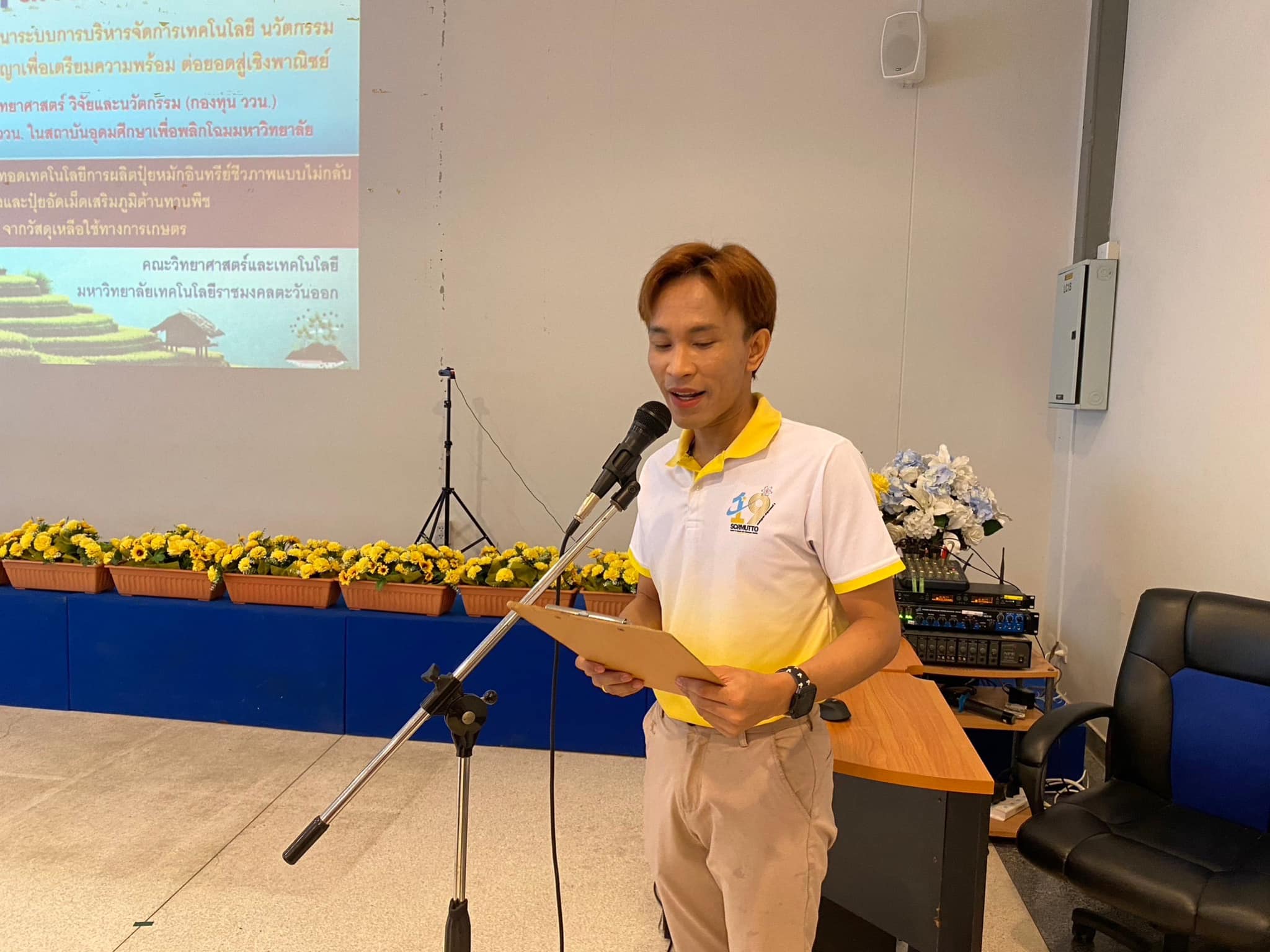 เมื่อวันที่ 3 กุมภาพันธ์ 2567 รศ.ดร. สุธัญญา พรหมสมบูรณ์ คณบดีคณะวิทยาศาสตร์และเทคโนโลยี มหาวิทยาลัยเทคโนโลยีราชมงคลตะวันออก เป็นประธานเปิดโครงการพัฒนาระบบการบริหารจัดการเทคโนโลยี นวัตกรรม และทรัพย์สินทางปัญญาเพื่อเตรียมความพร้อมต่อยอดสู่เขิงพาณิชย์ โครงการย่อยที่ 5 การถ่ายทอดเทคโนโลยีการผลิตปุ๋ยหมักอินทรีย์ชีวภาพแบบไม่กลับกอง และปุ๋ยอัดเม็ดเสริมภูมิต้านทานพืช จากวัสดุเหลือใช้ทางการเกษตร กิจกรรมที่ 1 อบรมการปฏิบัติการทำปุ๋ยหมักอินทรีย์ชีวภาพแบบไม่กลับกอง และปุ๋ยอัดเม็ดเสริมภูมิต้านทานพืช จากวัสดุเหลือใช้ทางการเกษตร ที่จัดขึ้นระหว่าง 3 -4 กุมภาพันธ์ 2567 โดยมี ผศ.ดร. กรณัฏฐ์ นาคภิบาล รองคณบดีฝ่ายวิชาการและวิจัย กล่าวรายงานถึงวัตถุประสงค์การจัดงาน ที่จัดขึ้นเพื่อถ่ายทอดเทคโนโลยีการผลิตปัจจัยการผลิตทางการเกษตรจากวัสดุเหลือใช้