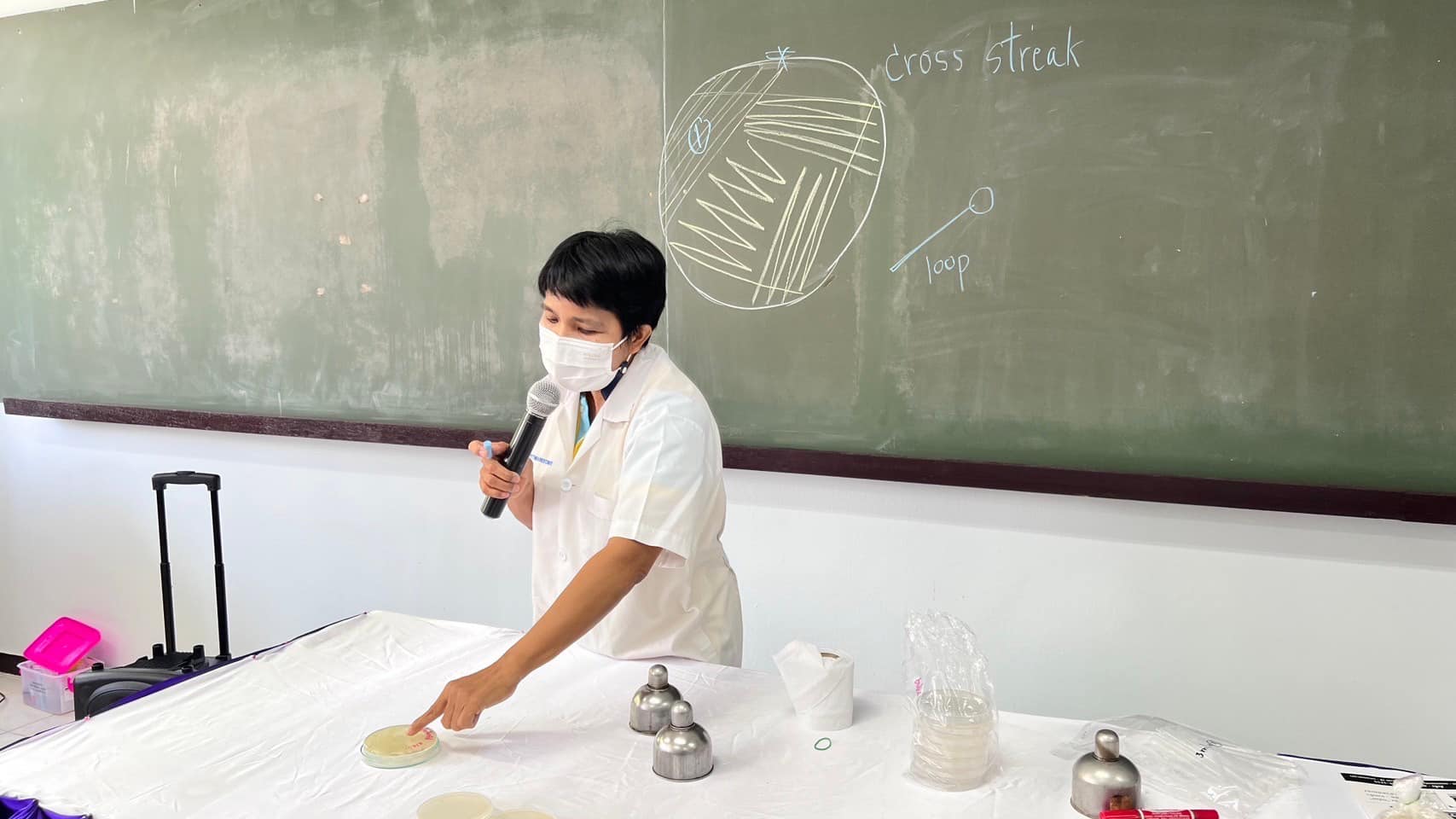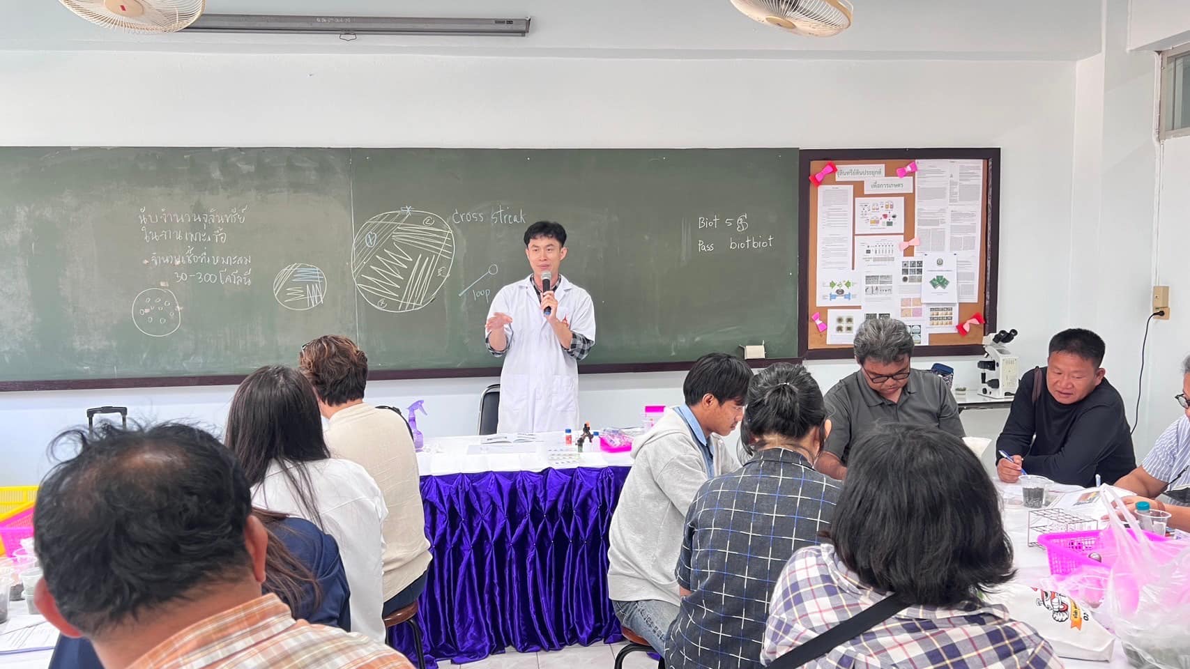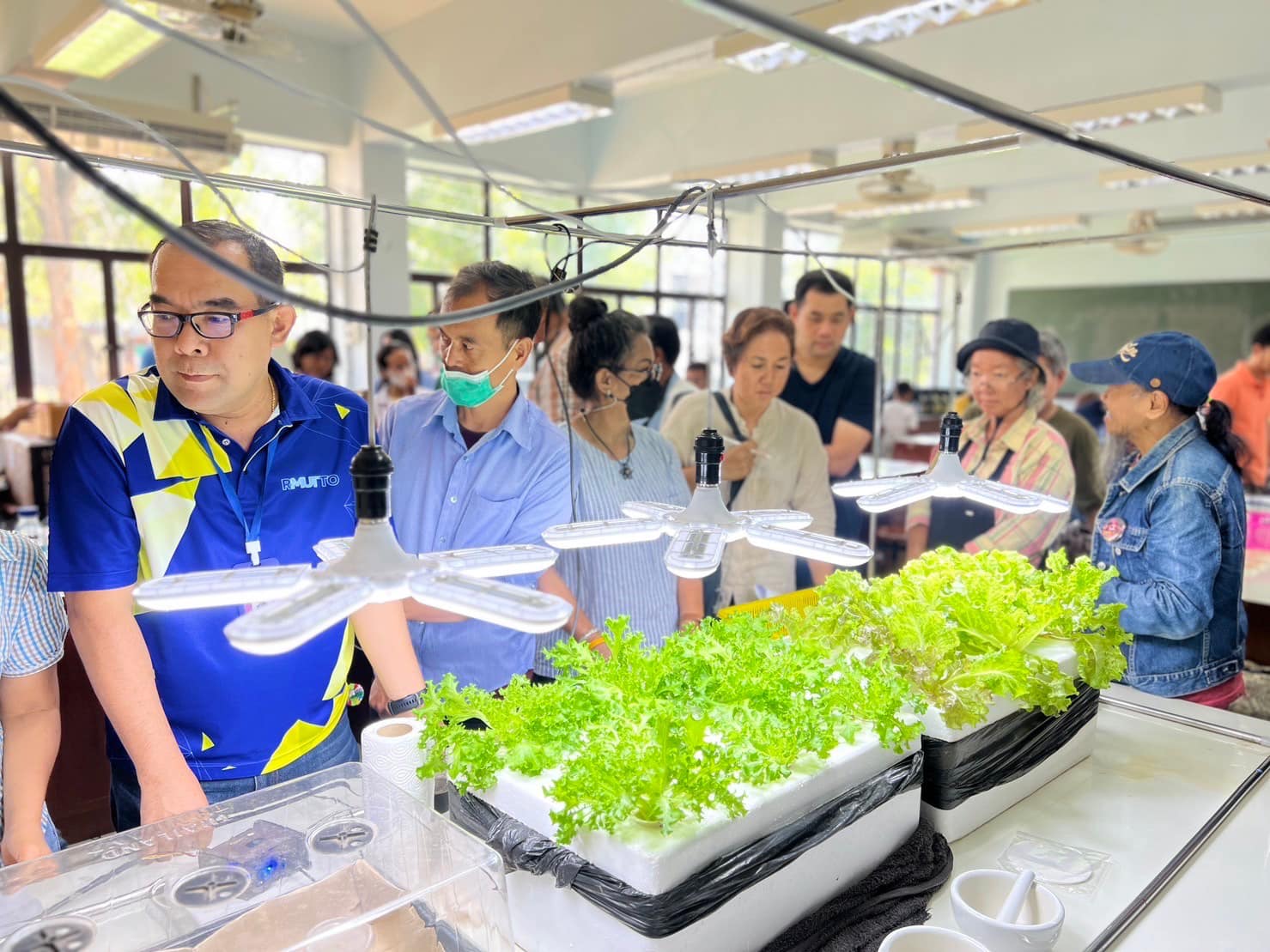 อาจารย์ ดร.วัชรินทร์ ยุทธวานิชกุล อาจารย์มนตรี เรืองสิงห์ อาจารย์จินตนา เพชรมณีโชติ และอาจารย์ ดร. สุธีรา อานามวงษ์ วิทยากรจากสาขาวิชาเทคโนโลยีชีวภาพ บรรยายและปฏิบัติการ เรื่อง การทำสารชีวภัณฑ์ที่ใช้ทางการเกษตร และการผลิตปุ๋ยอินทรีย์ การผลิตปุ๋ยชีวภาพปุ๋ยอินทรีย์แบบไม่กลับกอง : วิศวกรรมแม่โจ้