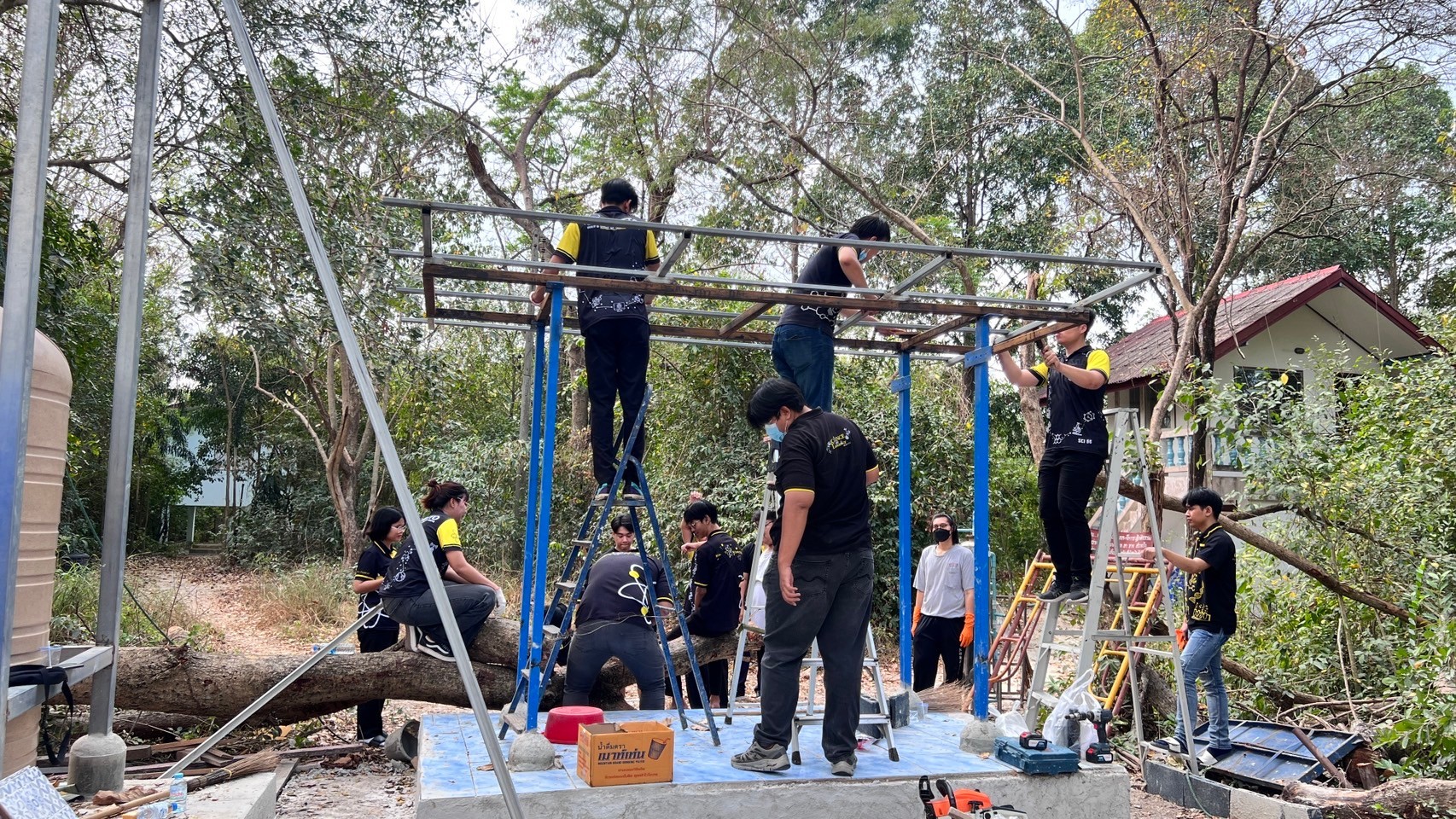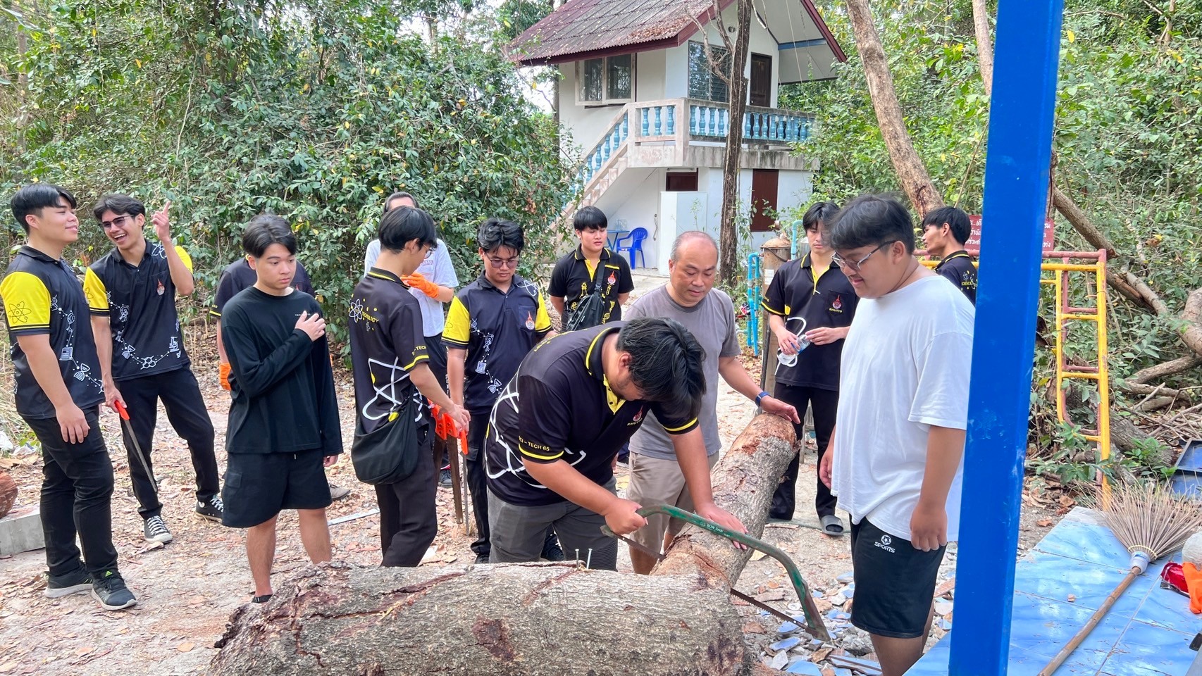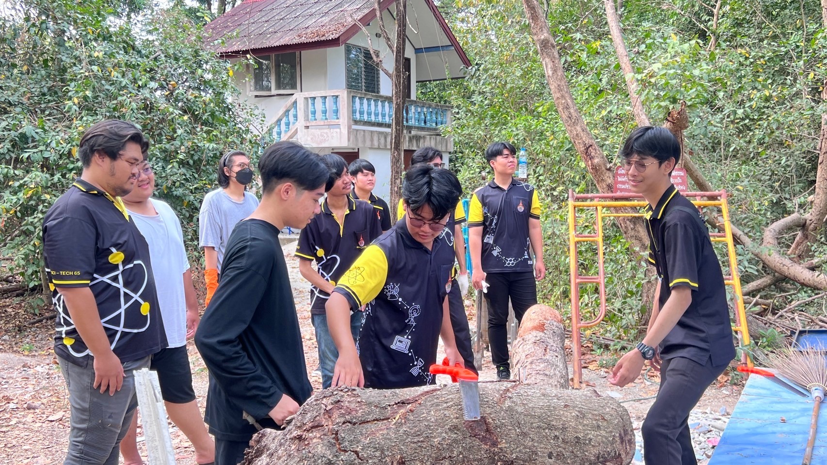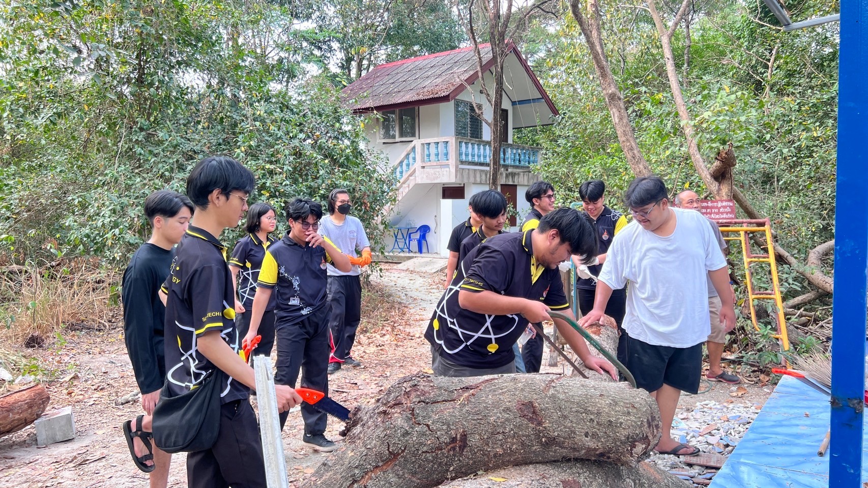วันที่ 17 กุมภาพันธ์ 2567 สโมสรนักศึกษาคณะวิทยาศาสตร์และเทคโนโลยี จัดโครงการนักวิทย์จิตอาสา SCITECH VOLUNTEER ณ ธุดงคสถานชั้นยอดสาขาวัดปาลิไลยวัน ตำบลบางพระ อำเภอศรีราชา จังหวัดชลบุรีโดยมีคณาจารย์ เจ้าหน้าที่และนักศึกษาเข้าร่วมกว่า 40 คน โดยมีวัตถุประสงค์ของการจัดโครงการเพื่อปลูกฝังให้นักศึกษามีคุณธรรมจริยธรรม มีจิตอาสา และบำเพ็ญประโยชน์เพื่อสังคม โดยทุกคนร่วมทำความสะอาดบริเวณลานวัด ปัดกวาดพื้น เก็บขยะ ล้างห้องน้ำ และลงมือปฎิบัติงานด้านก่อสร้าง ผสมปูน เทพื้นโรงเก็บถังพักน้ำ ในช่วงท้ายของโครงการพระอาจารย์นำทุกคนสวดมนต์ ไหว้พระ และสรุปข้อคิดหลักธรรมที่ได้จากโครงการ ให้นักศึกษาเป็นผู้มีทัศนคติความเป็นผู้เสียสละต่อสังคม และเป็นการทำนุบำรุงพระพุทธศาสนาให้คงอยู่สืบไป