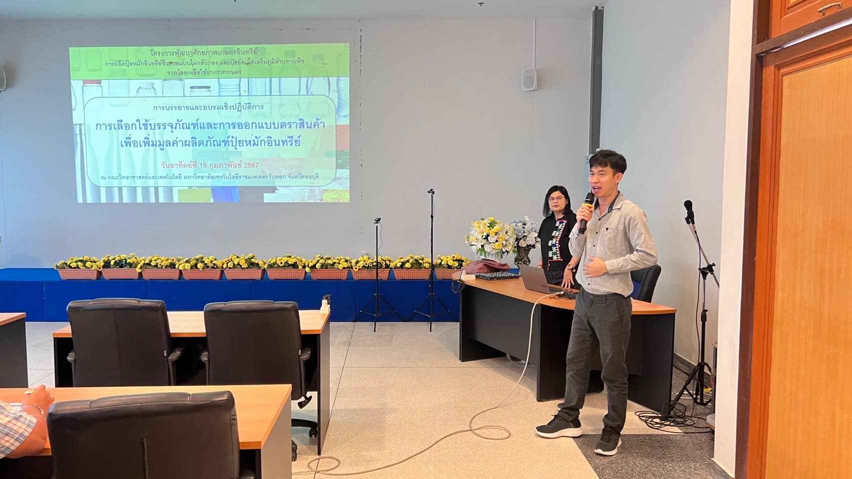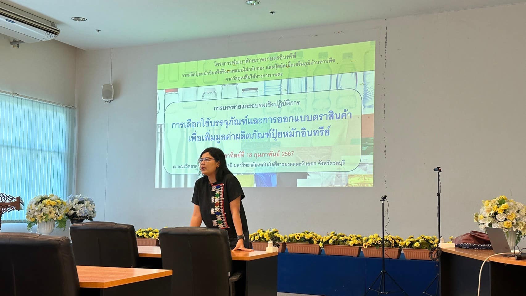 วันที่ 18 กุมภาพันธ์ 2567 คณะวิทยาศาสตร์และเทคโนโลยี จัดโครงการพัฒนาระบบการบริหารจัดการเทคโนโลยี นวัตกรรม และทรัพย์สินทางปัญญาเพื่อเตรียมความพร้อมต่อยอดสู่เชิงพาณิชย์ โครงการย่อยที่ 5 การถ่ายทอดเทคโนโลยีการผลิตปุ๋ยหมักอินทรีย์ชีวภาพแบบไม่กลับกอง และปุ๋ยอัดเม็ดเสริมภูมิต้านทานพืช จากวัสดุเหลือใช้ทางการเกษตร กิจกรรมที่ 2 อบรมการตรวจสอบคุณภาพ พรบ และมาตรฐานปุ๋ย การพัฒนาบรรจุภัณฑ์ โลโก้ ช่องทางการจำหน่ายและโฆษณา ปุ๋ยหมักอินทรีย์ชีวภาพ