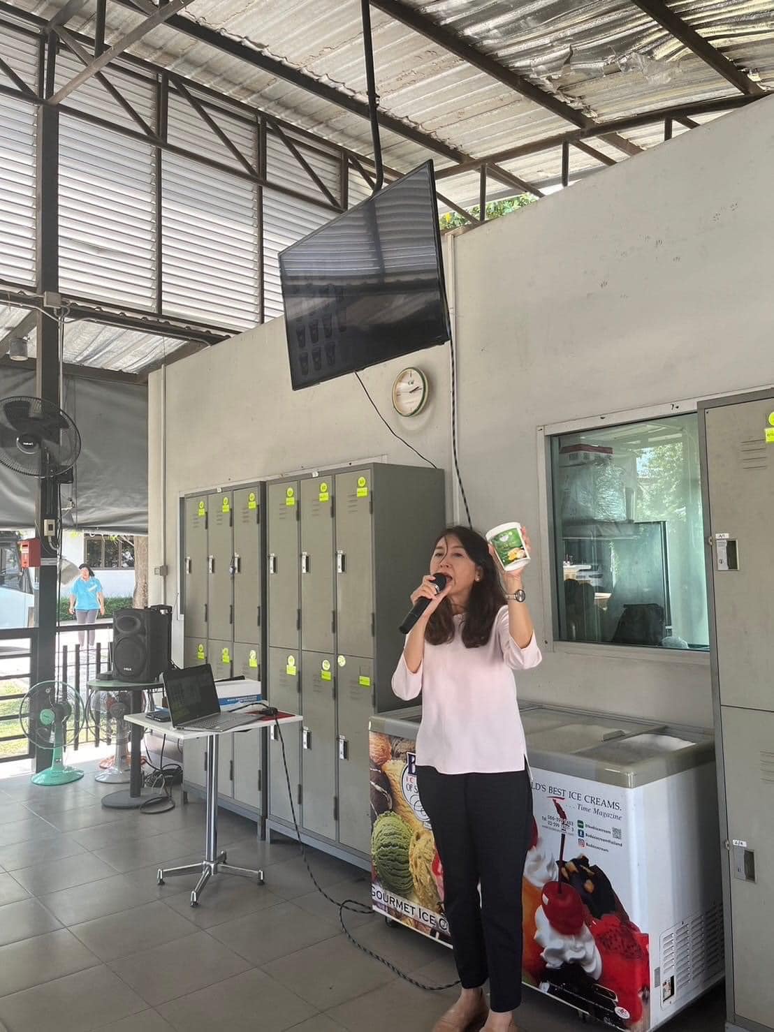 เวลา 13:30-16:30 น. เข้าเยี่ยมชม บริษัท อเมริกันฟู้ด จำกัด จ.ปทุมธานี ผู้ผลิตไอศกรีมบัดส์ โดยเยี่ยมชมและรับฟังการบรรยายการผลิตไอศกรีม จาก ดร.จตุพร อรุณกมลศรี ที่ปรึกษาและพัฒนาผลิตภัณฑ์ พร้อมนำชมส่วนพัฒนาผลิตภัณฑ์ โดย คุณนวัชวรรณ คลองสติ ผู้จัดการฝ่ายผลิต ควบคุมคุณภาพและพัฒนาผลิตภัณฑ์