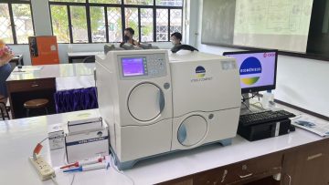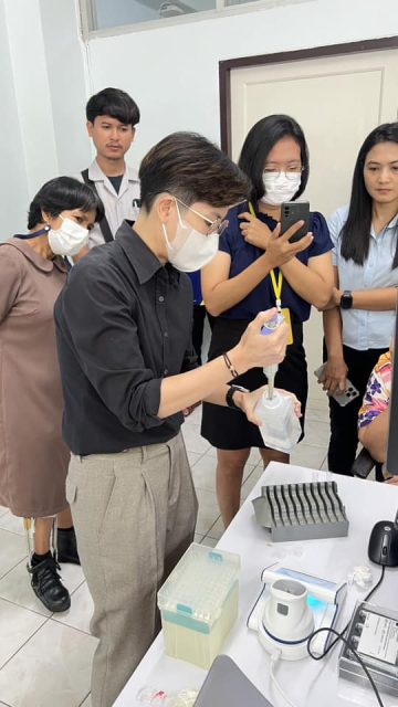 ทั้งนี้มีอาจารย์ นักวิจัย นักศึกษาปริญญาโท และศิษย์เก่า เข้าร่วมรับฟังและชมสาธิตการใช้เครื่องมือ VITEK® 2 Compact เป็นเครื่องตรวจจำแนกเชื้อจุลินทรีย์ และทดสอบความไวของเชื้อต่อยาปฏิชีวนะ โดยใช้หลักการทางชีวเคมี สามารถตรวจจำแนกเชื้อจุลินทรีย์ได้หลายกลุ่ม เช่น แบคทีเรียแกรมลบ แบคทีเรียแกรมบวก และเชื้อยีสต์ ซึ่งในการทดสอบนั้นตัวเครื่องจะทำการอ่านผลการทดสอบของตัวอย่างที่บรรจุอยู่ในการ์ด VITEK® ID โดยทำการอ่านการเกิดปฏิกิริยาทุก 15 นาที จึงทำให้การรายงานผลการวินิจฉัยนั้นมีความรวดเร็ว