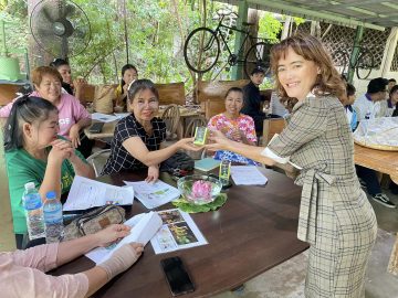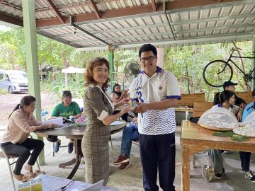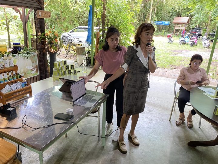 กิจกรรมที่ 2 การจัดถ่ายทอดเทคโนโลยีพร้อมฝึกปฏิบัติการ ครั้งที่ 1 เรื่อง การตลาดเพื่อการส่งออก ณ วิสาหกิจชุมชนคนรักษ์มะพร้าวตะเคียนเตี้ย อ.บางละมุง จ.ชลบุรี