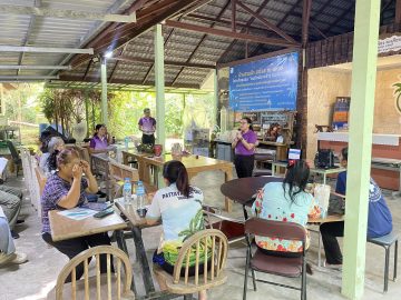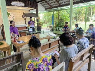 โดยมีผู้เข้าอบรมกลุ่มวิสาหกิจชุมชนคนรักมะพร้าวตะเคี้ยเตี้ย พร้อมทั้งมีผู้ช่วยศาสตราจารย์วันทนา รอดประเสริฐ ผู้ช่วยศาสตราจารย์กฤตยชล ทองธรรมสถิต และนักศึกษาคณะมนุษยศาสตร์และสังคมศาสตร์ ร่วมบูรณาการในรายวิชาการจัดการชุมชน รายวิชาการสร้างผู้ประกอบการธุรกิจในยุคดิจิทัล และรายวิชาการจัดการเชิงกลยุทธ์เพื่อสร้างความได้เปรียบเชิงการแข่งขัน ในโครงการดังกล่าว