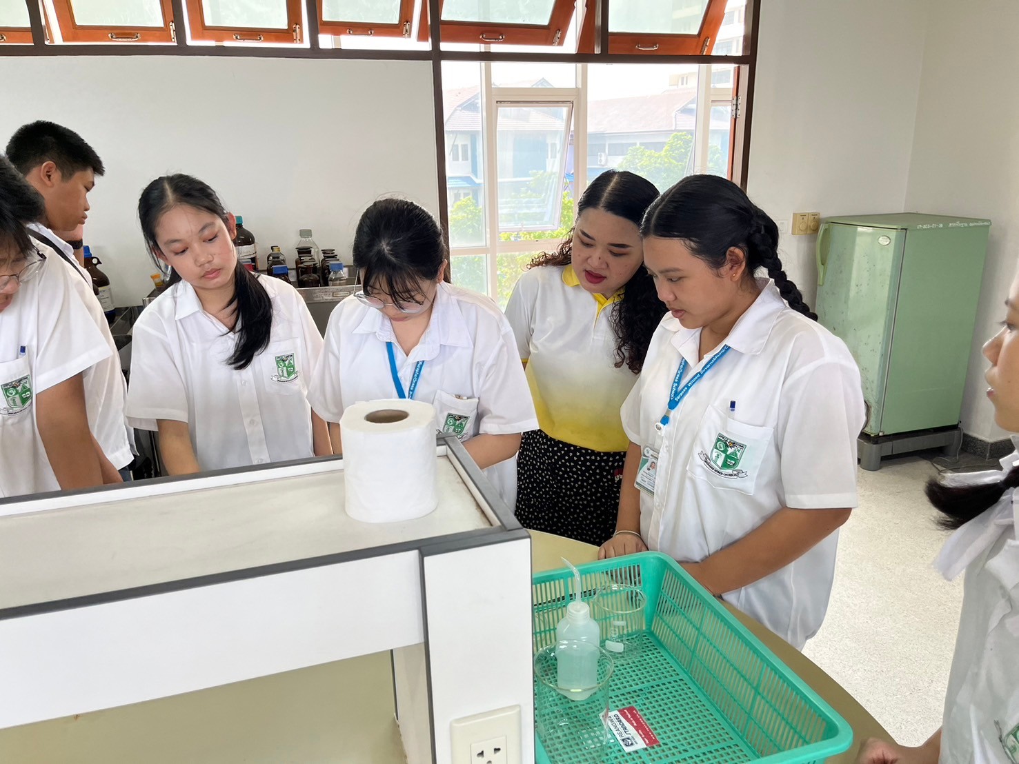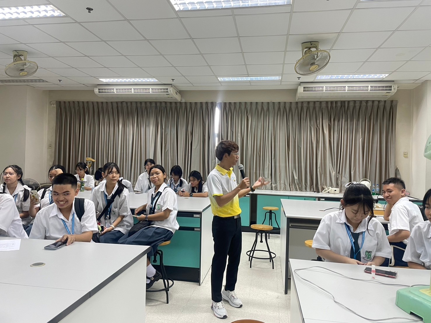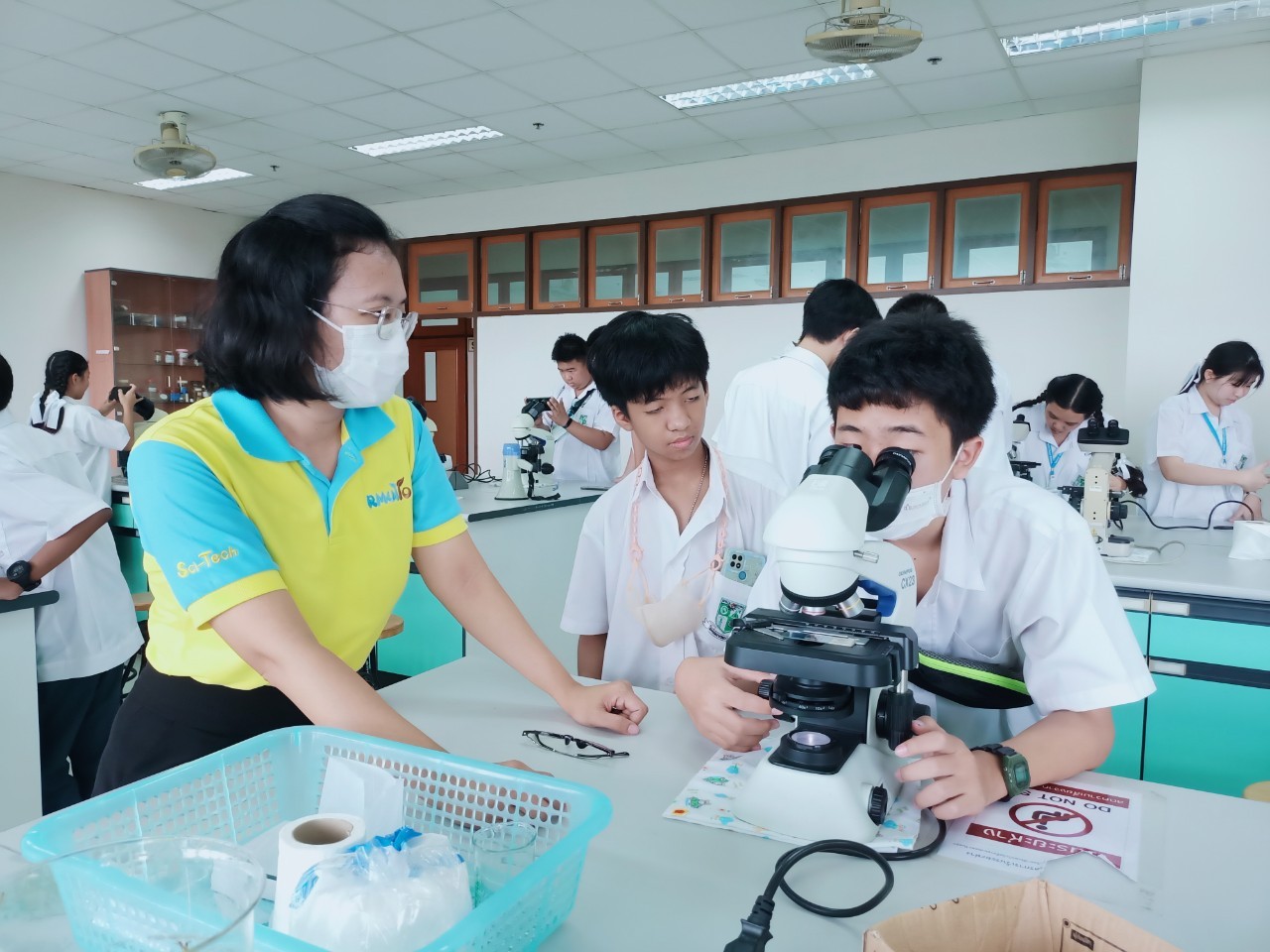 วันที่ 23 สิงหาคม 2567 ศูนย์บริการวิชาการนวัตกรรมและเทคโนโลยีสารสนเทศ คณะวิทยาศาสตร์และเทคโนโลยี จัดโครงการอบรมปฏิบัติการวิทยาศาสตร์ สำหรับนักเรียนมัธยมศึกษาตอนต้นและตอนปลาย โดยมี ผศ.ดร.วิจิตร์ วิโสรัมย์ หัวหน้าหน่วยส่งเสริมการเรียนรู้ด้านวิทยาศาสตร์และเทคโนโลยี ศูนย์บริการวิชาการนวัตกรรมและเทคโนโลยีสารสนเทศ คณะวิทยาศาสตร์และเทคโนโลยี เป็นผู้รับผิดชอบโครงการ ทั้งนี้ โครงการดังกล่าวมีวัตถุประสงค์เพื่อให้บริการอบรมปฏิบัติการวิทยาศาสตร์ แก่นักเรียนชั้นมัธยมศึกษาตอนต้นและตอนปลาย โรงเรียนสารสาสน์วิเทศชลบุรี ให้มีความเข้าใจในเนื้อหาของรายวิชาเคมี ฟิสิกส์ และชีววิทยาจากการปฏิบัติจริง เนื้อหาการอบรมประกอบด้วย