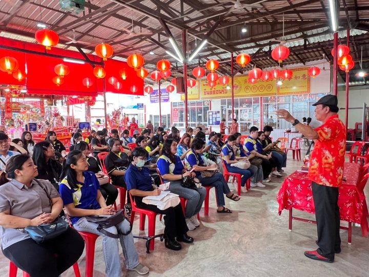 เมื่อวันที่ 24 สิงหาคม 2567 อาจารย์ ดร.สุธีรา อานามวงษ์ รองคณบดีฝ่ายกิจการนักศึกษาและกิจการพิเศษ และ ผศ.ดร.กรณัฏฐ์ นาคภิบาล รองคณบดีฝ่ายวิชาการและวิจัย พร้อมด้วยคณาจารย์และนักศึกษาเข้าร่วมดำเนินโครงการตลาดนัดพื้นถิ่น ของกินเมืองชล จัดโดยแผนกกิจกรรมนักศึกษา คณะวิทยาศาสตร์และเทคโนโลยี มทร.ตะวันออก ณ ตลาดจีนโบราณบ้านชากแง้ว ตำบลห้วยใหญ่ อำเภอบางละมุง จังหวัดชลบุรี โดยมีวัตถุประสงค์เพื่อให้ผู้เข้าร่วมโครงการมีความรู้ความเข้าใจวัฒนธรรม ภูมิปัญญาท้องถิ่น และของดีจังหวัดชลบุรี โดยได้รับความอนุเคราะห์จากชมรมส่งเสริมการท่องเที่ยวโดยชุมชนบ้านชากแง้ว สำหรับวิทยากรบรรยายในโครงการ รวมถึงการจัดกิจกรรม workshop เรียนรู้วัฒนธรรมท้องถิ่น โดยนักศึกษาที่เข้าร่วมโครงการได้เรียนรู้การทำบ๊ะจ่าง กิจกรรมการทำขนมกะลอจิ๊ กิจกรรมการเพ้นท์หน้ากากจีน และกิจกรรมศึกษาแหล่งเรียนรู้ตลาดวิถีชุมชนชากแง้ว โดยมีการบูรณาการโครงการกับรายวิชาในหลักสูตรต่างๆ ของคณะ ซึ่งเป็นประโยชน์กับนักศึกษาในการเรียนรู้เรื่องเล่า เรื่องราว ได้สัมผัสวิถีชีวิตของคนท้องถิ่น วัฒนธรรม ความเชื่อของคนไทยเชื้อสายจีน ในการร่วมแรงร่วมใจพัฒนาชุมชนให้เป็นแหล่งท่องเที่ยวทางวัฒนธรรมที่สำคัญแห่งหนึ่งของจังหวัดชลบุรี