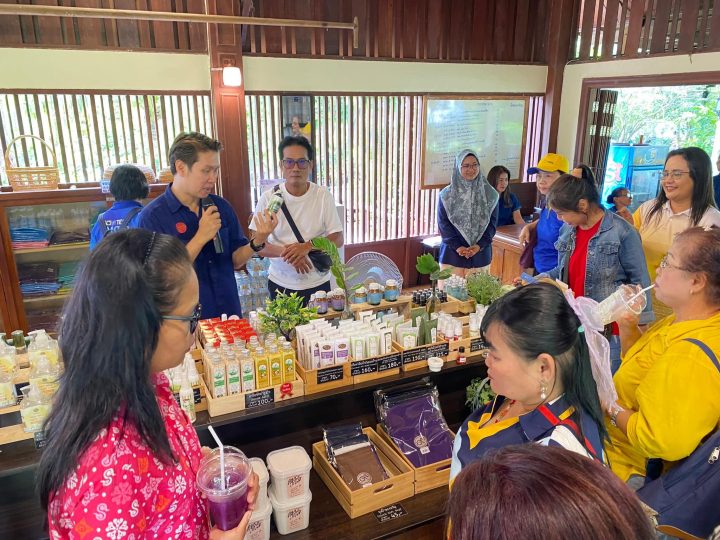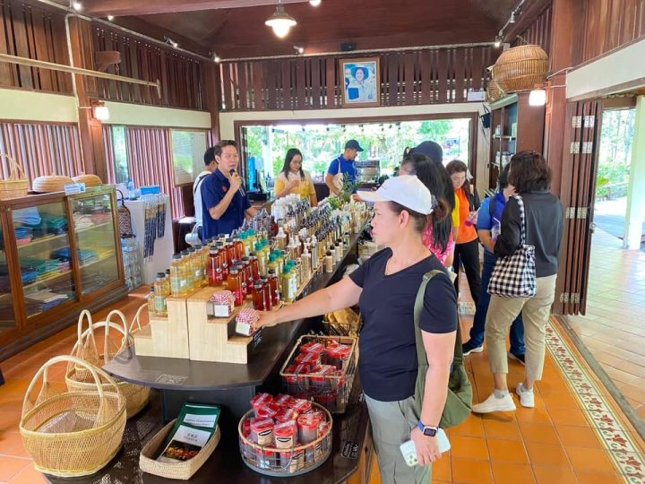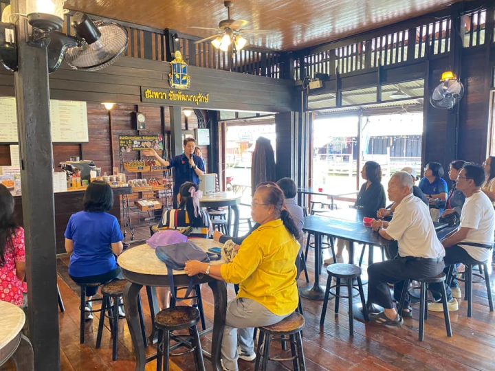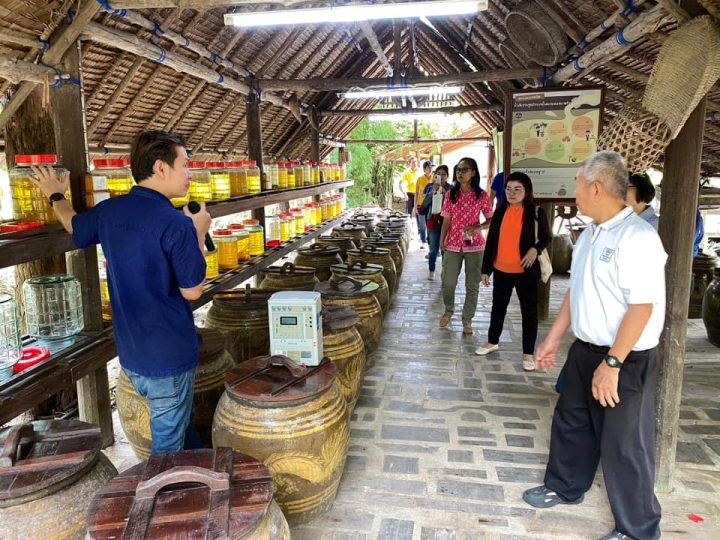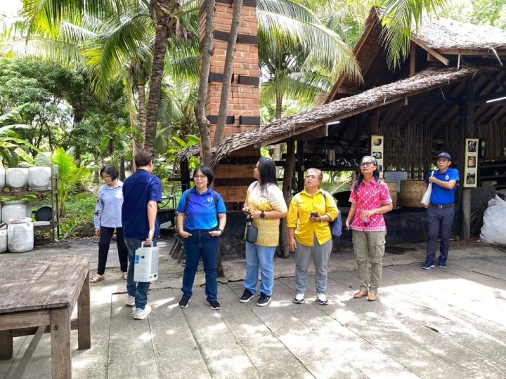 เมื่อวันที่ 24 สิงหาคม 2567 ผู้ช่วยศาสตราจารย์ตวงสิริ สยมภาค ผู้อำนวยการสถาบันวิจัยและพัฒนา หัวหน้าโครงการ พร้อมด้วยคณาจารย์และวิสาหกิจชุมชนคนรักษ์มะพร้าวตะเคียนเตี้ย เข้าศึกษาดูงานวิสาหกิจเพื่อสังคม (Social Enterprise) ภายใต้โครงการการเพิ่มคุณค่าสมุนไพรว่านสาวหลงและผักบุ้งทะเลเพื่อพัฒนาเป็นผลิตภัณฑ์เครื่องสำอางวิสาหกิจชุมชนคนรักษ์มะพร้าวตะเคียนเตี้ย อ.บางละมุง จ.ชลบุรี ปีที่ 3 ณ โครงการอัมพวา ชัยพัฒนานุรักษ์ ตำบลอัมพวา อำเภออัมพวา จังหวัดสมุทรสงคราม โดยมีวัตถุประสงค์ส่งเสริมการดำเนินงานของธุรกิจเพื่อพัฒนาไปสู่การเป็นธุรกิจเพื่อสังคม โดยได้รับเกียรติวิทยากรจากมูลนิธิอัมพวาชัยพัฒนานุรักษ์ บรรยาย เรื่อง ความเป็นมาของการส่งเสริมการดำเนินงานของชุมชนเพื่อพัฒนาไปเป็นธุรกิจเพื่อสังคม Social Enterprise (SE) ของชุมชนอัมพวาชัยพัฒนานุรักษ์ และกิจกรรมปฏิบัติการเรื่องสบู่อัญชันมะนาว ซึ่งเป็นประโยชน์กับวิสาหกิจชุมชนในการเรียนรู้จุดเริ่มต้นและเส้นทางสู่การเป็นธุรกิจเพื่อสังคม ได้แนวทางในการดำเนินงานต่อไป พร้อมทั้ง แลกเปลี่ยนและเยี่ยมชมโครงการอัมพวา ชัยพัฒนานุรักษ์ อีกด้วย