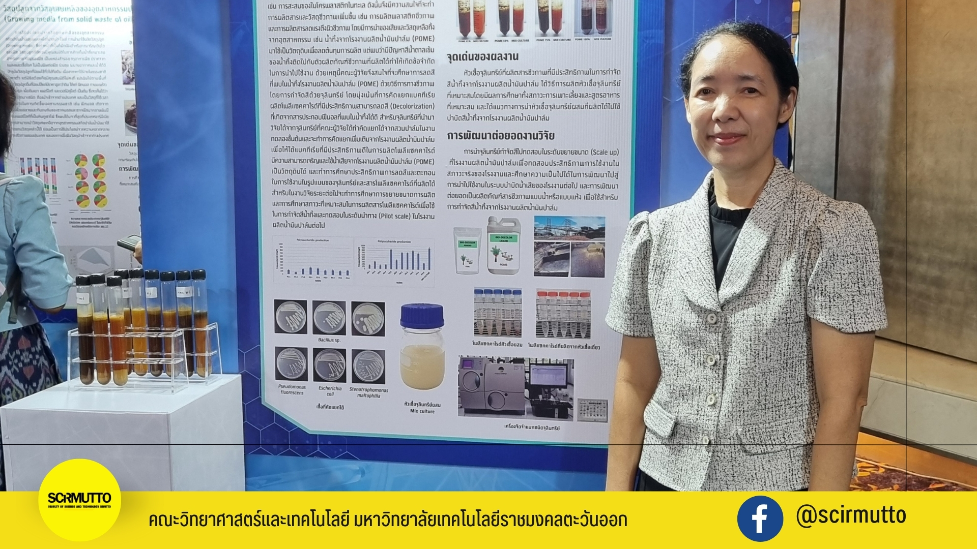 เมื่อวันศุกร์ที่ 27 กันยายน 2567 เวลา 08.00 – 13.00 น. ผู้ช่วยศาสตราจารย์ ดร.นันทพร พึ่งสังวร ในฐานะผู้ได้รับการสนับสนุนทุนวิจัยและนวัตกรรมจากสำนักงานการวิจัยแห่งชาติ (วช.) ประจำปีงบประมาณ 2566 นำผลงานวิจัยและนวัตกรรมภายใต้โครงการวิจัยเรื่อง “การกำจัดสีน้ำทิ้งโรงงานผลิตน้ำมันปาล์มด้วยสารชีวภาพที่ผลิตจากจุลินทรีย์” เข้าร่วมจัดแสดงภาคนิทรรศการ ในงานเสวนาเรื่อง “การผลักดันงานวิจัยด้านเทคโนโลยีชีวภาพและจุลินทรีย์สู่การขึ้นทะเบียนชีวภัณฑ์” และนิทรรศการผลงานวิจัยและนวัตกรรมด้านเทคโนโลยีชีวภาพและจุลินทรีย์ ณ ห้องประชุม ลีลาวดี (Lilavadee) โรงแรมรามาการ์เด้นส์ กรุงเทพมหานคร