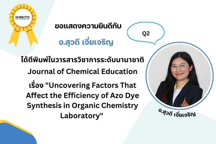 เรื่อง “Uncovering Factors That Affect the Efficiency of Azo Dye Synthesis in Organic Chemistry Laboratory” ได้ตีพิมพ์ในวารสารวิชาการระดับนานาชาติ Journal of Chemical Education