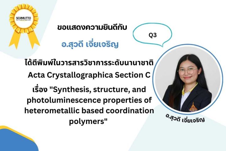 เรื่อง “Synthesis, structure, and photoluminescence properties of heterometallic based coordination polymers” ได้ตีพิมพ์ในวารสารวิชาการระดับนานาชาติ Acta Crystallographica Section C