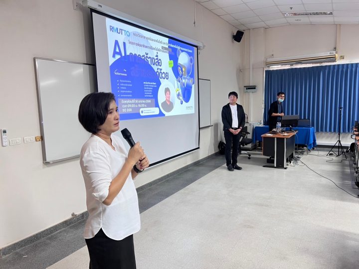 การอบรมครั้งนี้ได้รับเกียรติจาก ผู้ช่วยศาสตราจารย์นันทวิช เหล่าวิชยา อาจารย์ประจำหลักสูตรการผลิตเนื้อหาสร้างสรรค์และประสบการณ์ดิจิทัล คณะนิเทศศาสตร์ มหาวิทยาลัยกรุงเทพ เป็นวิทยากร นำทีมให้ความรู้และฝึกปฏิบัติภายใต้หัวข้อ “การสร้างสื่อสร้างสรรค์ด้วย AI”