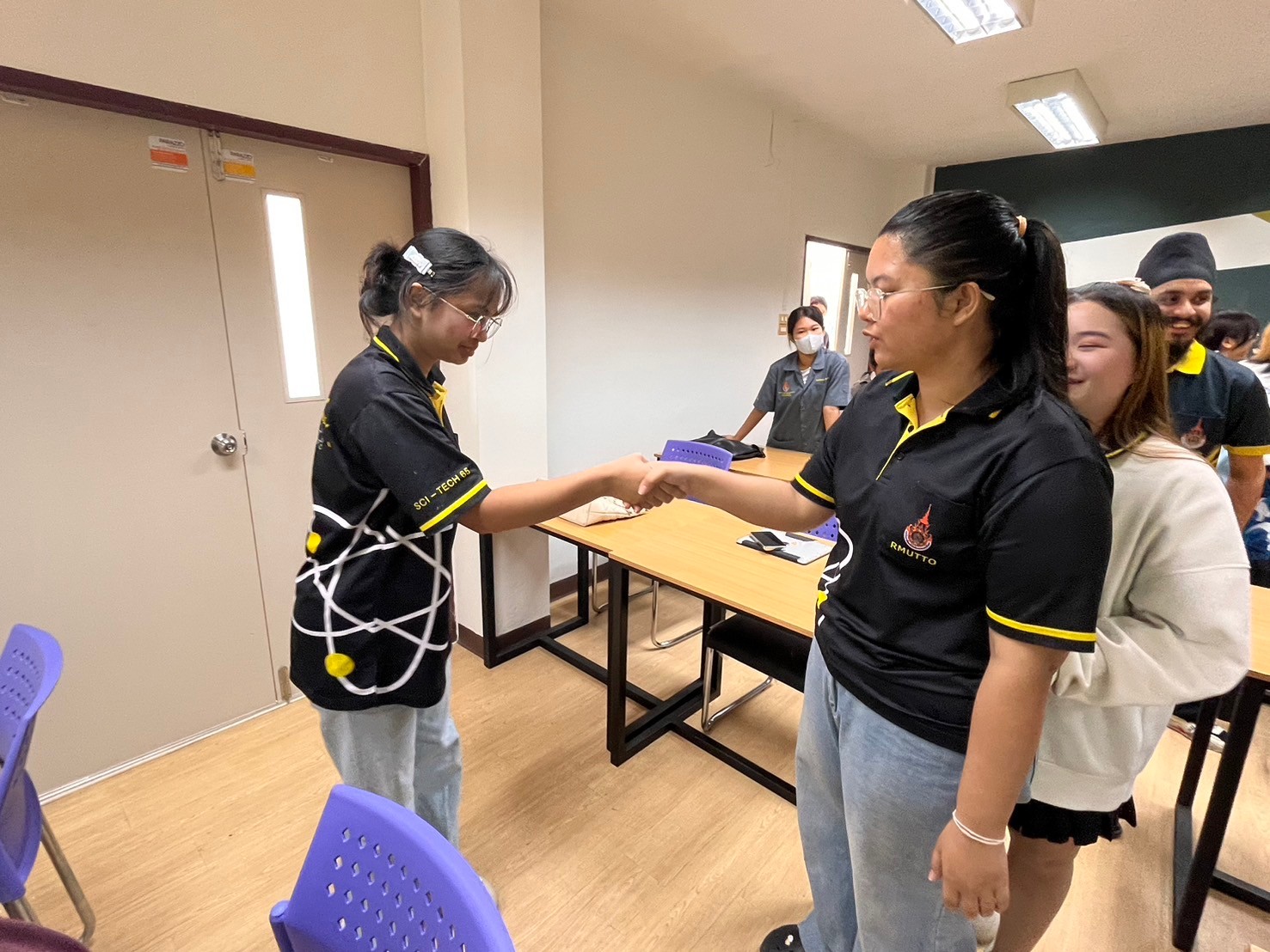 นอกจากนี้ ในช่วงท้ายของการอบรม นักศึกษาได้ร่วมทำกิจกรรมกลุ่มเพื่อฝึกทักษะการใช้ภาษาอังกฤษในสถานการณ์จริง โดยมีการนำเสนอผลงานและแลกเปลี่ยนความคิดเห็นกับวิทยากรและเพื่อนร่วมโครงการ บรรยากาศเต็มไปด้วยความสนุกสนานและการเรียนรู้อย่างมีส่วนร่วม