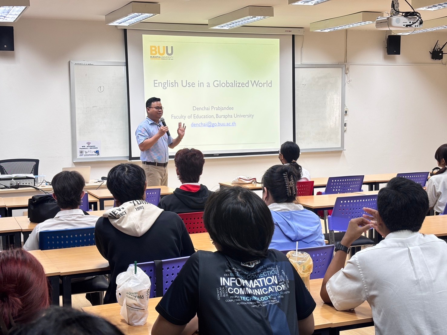 ณ ห้อง ศร 404 อาคารศูนย์เรียนรวม มหาวิทยาลัยเทคโนโลยีราชมงคลตะวันออก จ.ชลบุรี ซึ่งโครงการดังกล่าวมีวัตุประสงค์เพื่อให้นักศึกษามีความรู้และพัฒนาทักษะด้านการใช้คอมพิวเตอร์และเทคโนโลยีสารสนเทศในยุคดิจิทัล โดยได้รับเกียรติจาก ผู้ช่วยศาสตราจารย์ ดร. เด่นชัย ปราบจันดี อาจารย์ประจำคณะศึกษาศาสตร์ มหาวิทยาลัยบูรพา เป็นวิทยากรอบรมเชิงปฏิบัติการในหัวข้อ English Use in a Globalized World มีนักศึกษาเข้าร่วมอบรมโดยบูรณาการกับรายวิชาจำนวน 31 คน