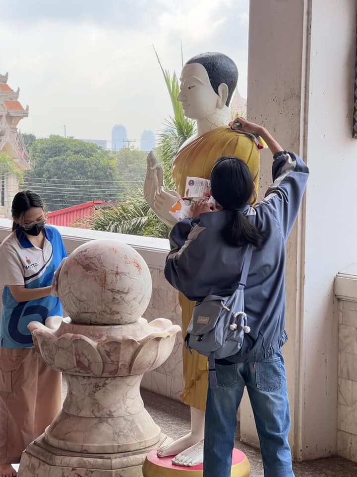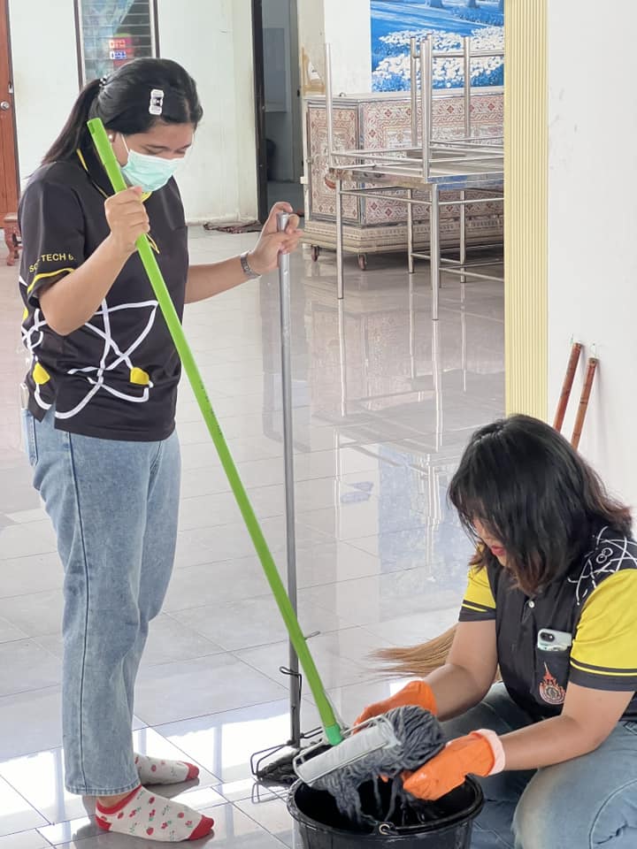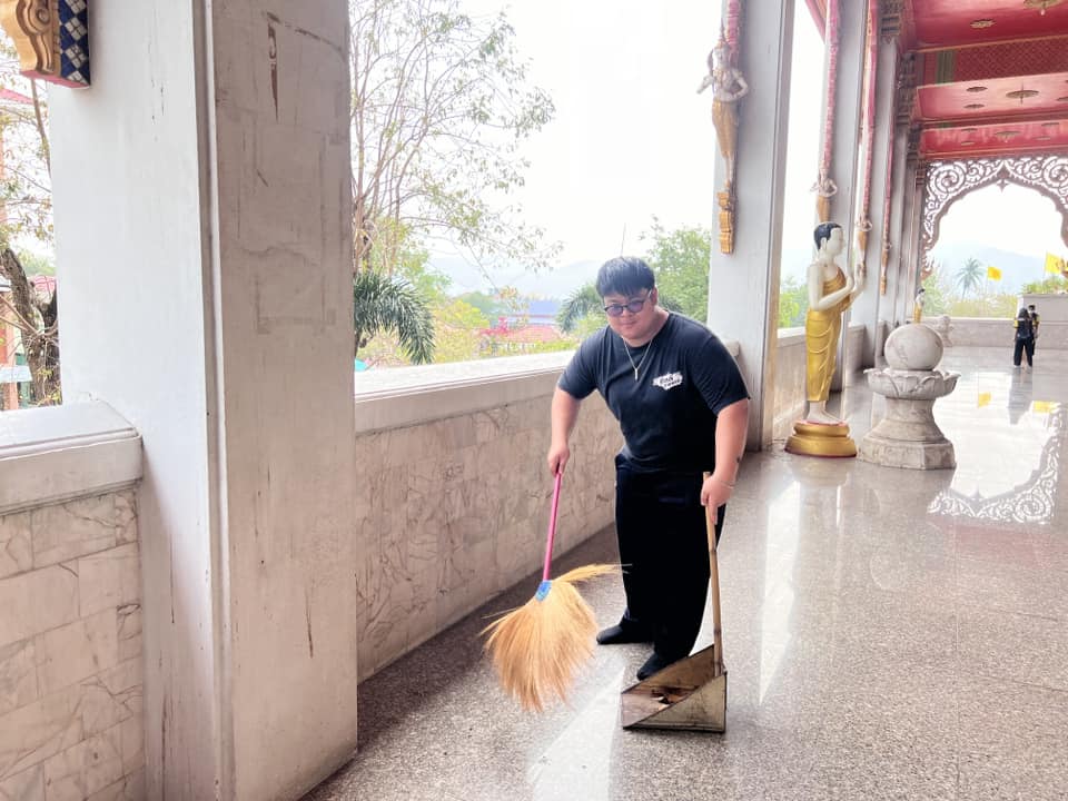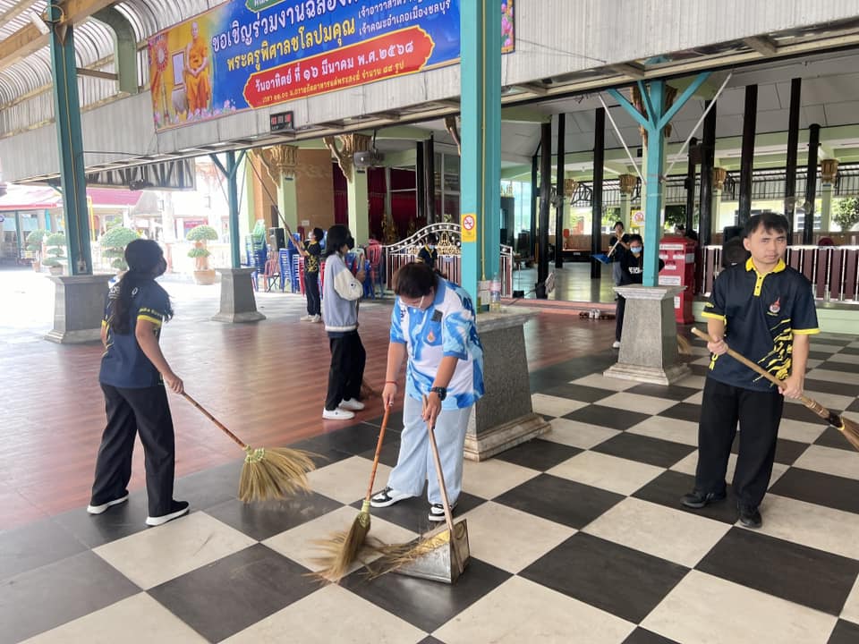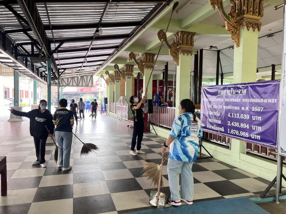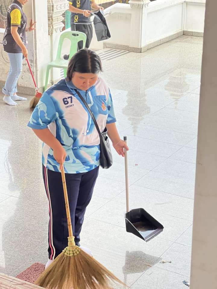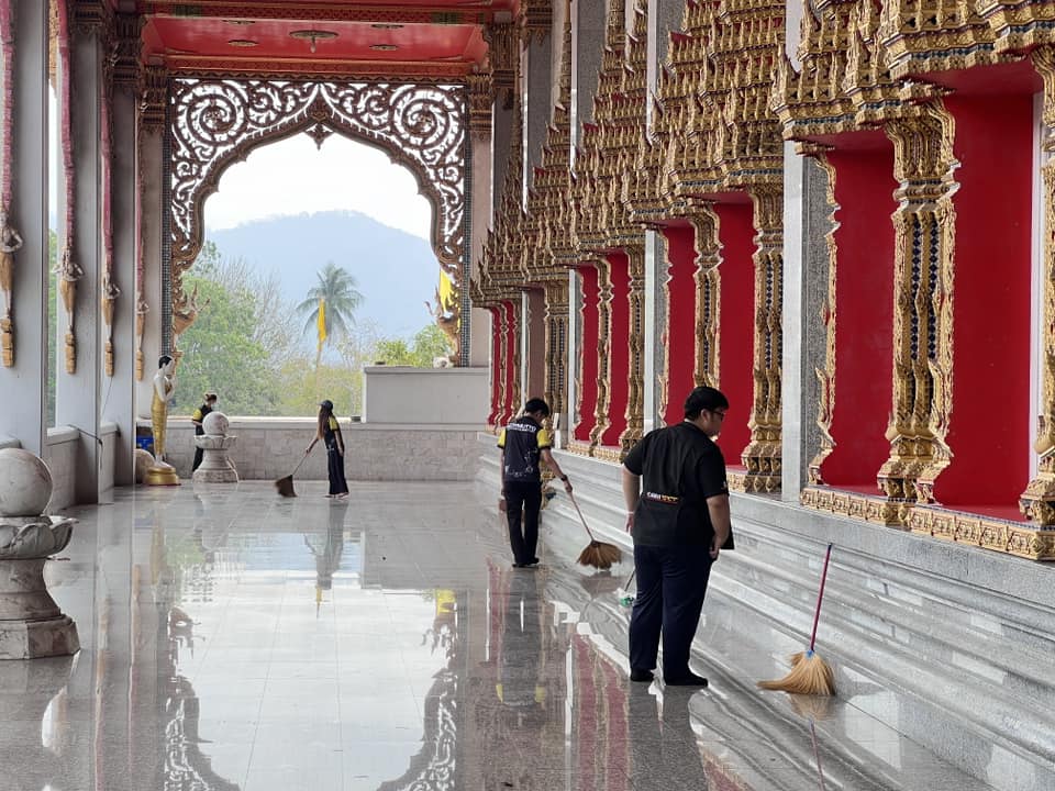 🔹 ทำความสะอาดบริเวณ พระอุโบสถ ศาลา และลานวัด