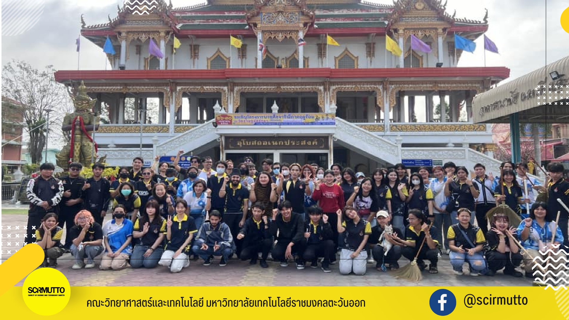 เมื่อวันที่ 22 กุมภาพันธ์ 2568 สโมสรคณะวิทยาศาสตร์และเทคโนโลยี มหาวิทยาลัยเทคโนโลยีราชมงคลตะวันออก ได้จัดโครงการ “นักวิทย์จิตอาสา Scitech Volunteer” ณ วัดราษฎร์ศรัทธาและโรงเรียนวัดราษฎร์ศรัทธา โดยมีคณาจารย์ เจ้าหน้าที่ และนักศึกษากว่า 70 คน เข้าร่วมกิจกรรมจิตอาสา