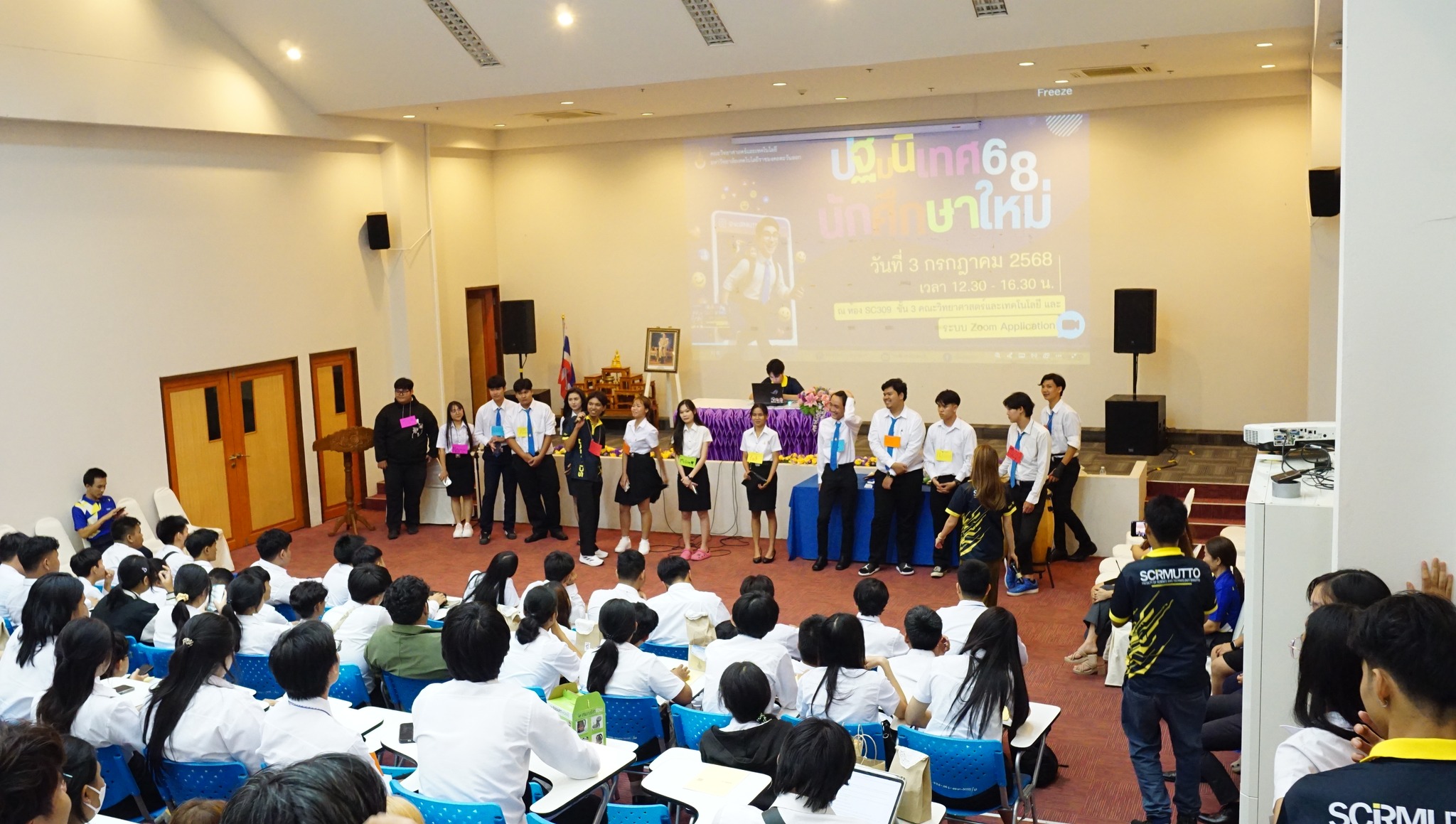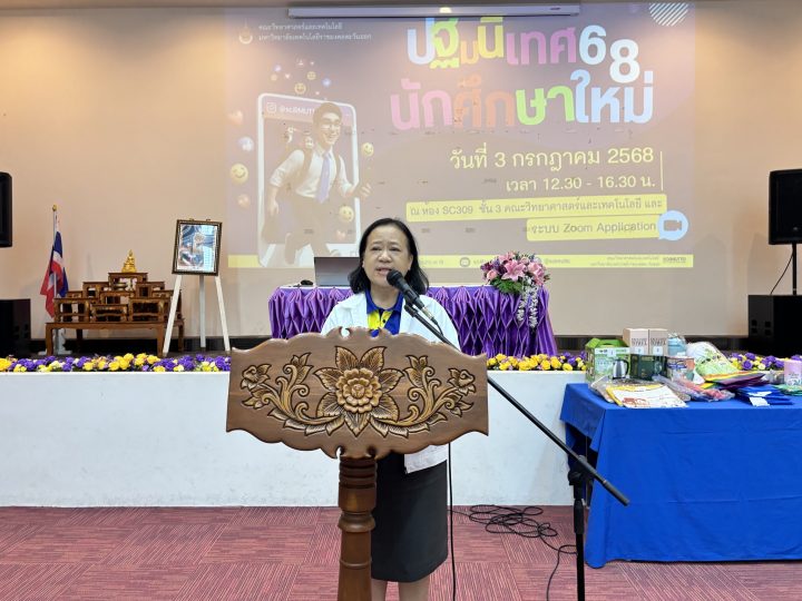 เมื่อวันพฤหัสบดีที่ 3 กรกฎาคม 2568 รองศาสตราจารย์ ดร.สุธัญญา พรหมสมบูรณ์ คณบดีคณะวิทยาศาสตร์และเทคโนโลยี มหาวิทยาลัยเทคโนโลยีราชมงคลตะวันออก เป็นประธานในพิธีเปิดกิจกรรมปฐมนิเทศนักศึกษาใหม่ คณะวิทยาศาสตร์และเทคโนโลยี ประจำปีการศึกษา 2568 พร้อมกล่าวต้อนรับและให้โอวาทแก่นักศึกษาใหม่ แนะนำคณะฯ ผู้บริหาร บุคลากร และสาขาวิชา โดยมีคณาจารย์ บุคลากร สโมสรนักศึกษา และนักศึกษารุ่นพี่ร่วมกิจกรรม ณ ห้องประชุม SC309 ชั้น 3 อาคารเฉลิมพระเกียรติ 7 รอบพระชนมพรรษา คณะวิทยาศาสตร์และเทคโนโลยี และถ่ายทอดสดผ่านระบบ ZOOM meeting เพื่อให้ผู้ปกครองสามารถรับชมบรรยากาศของกิจกรรม