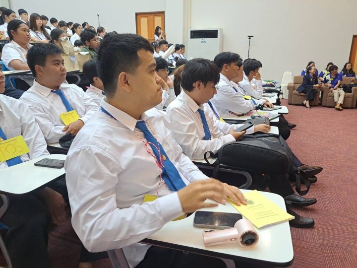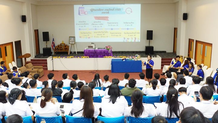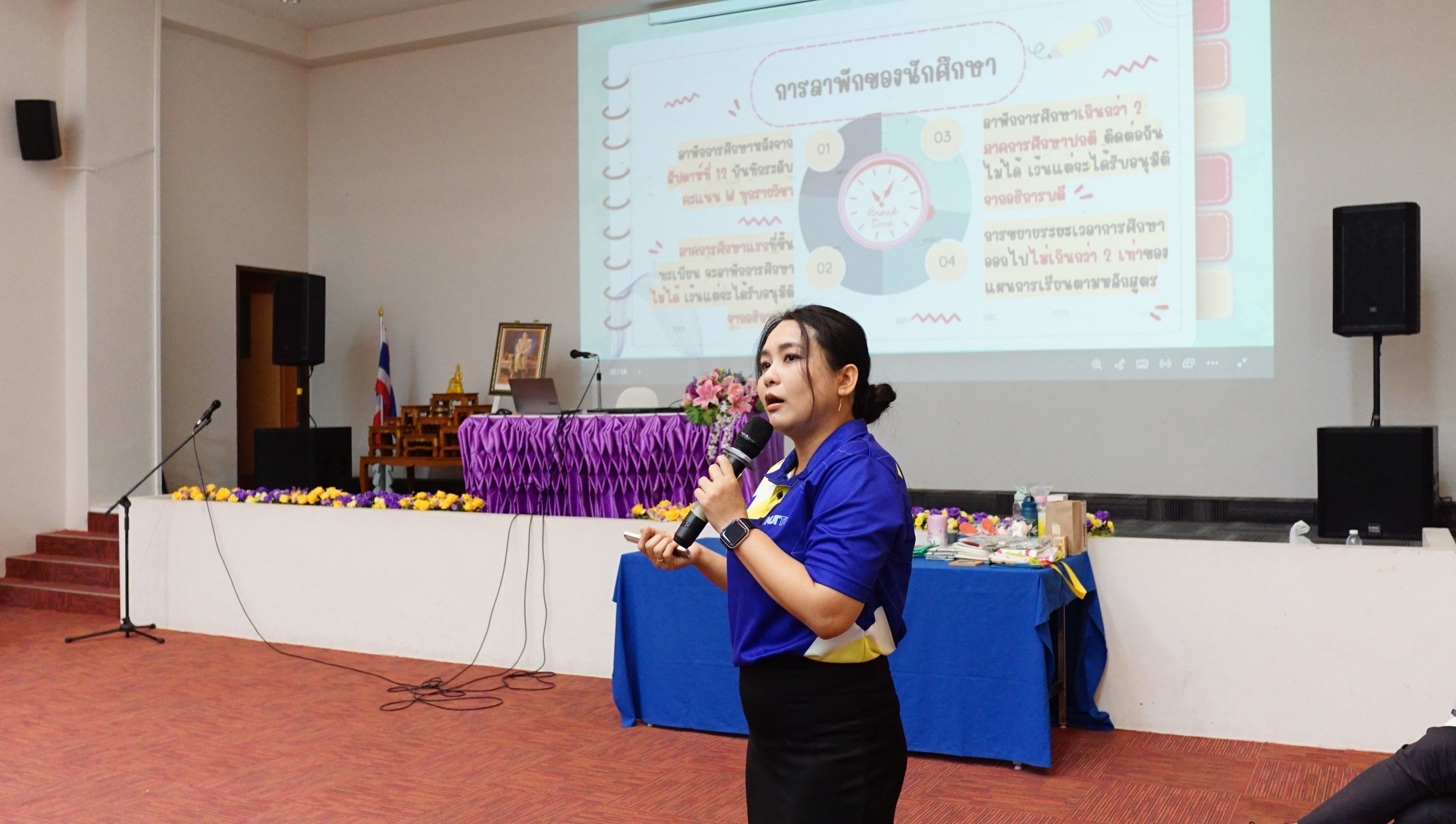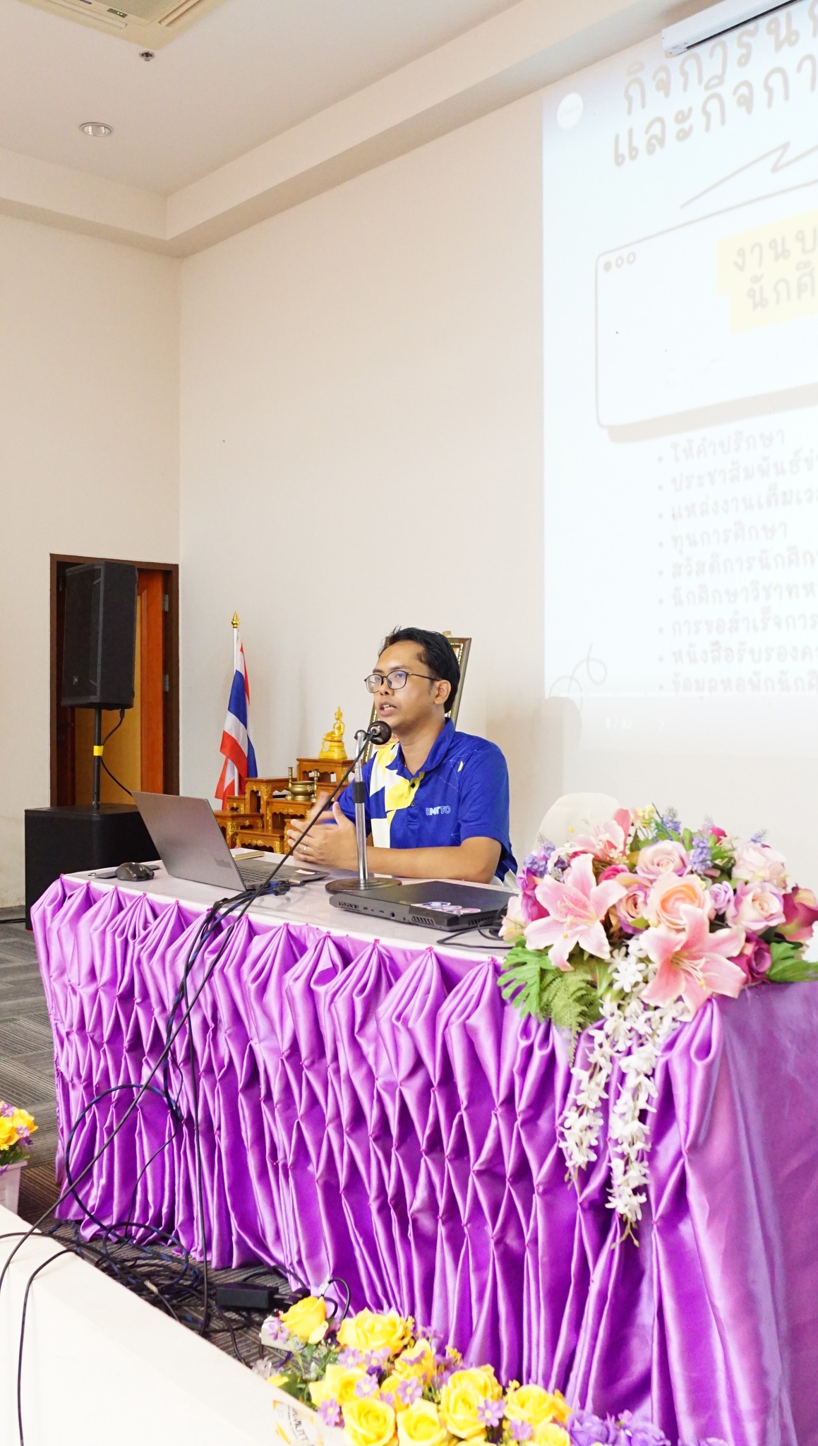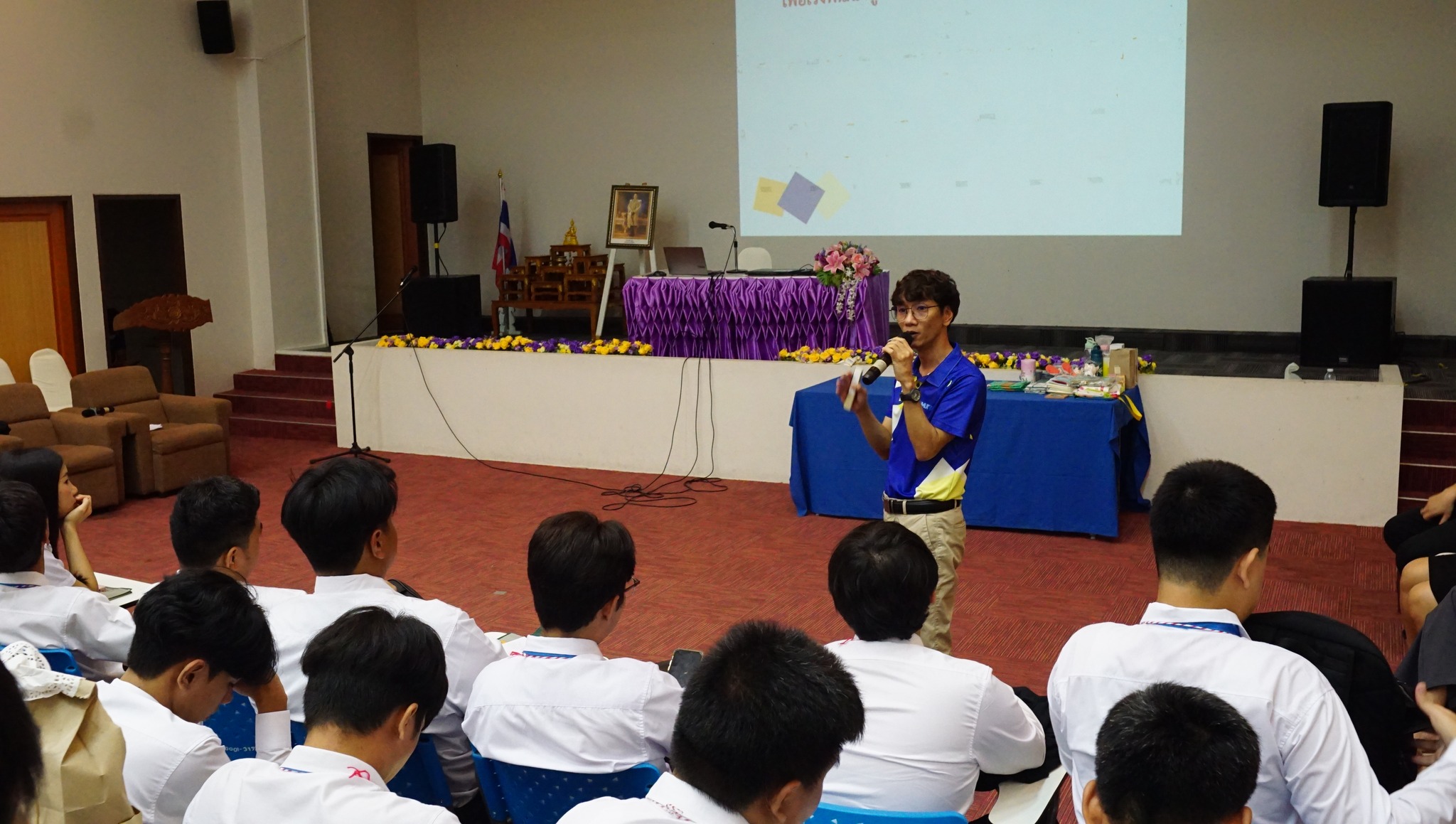 อ.ยศภัทร เรืองไพศาล ผู้ช่วยคณบดีด้านกิจกรรมนักศึกษา บรรยายแนะนำด้านกิจกรรมนักศึกษา