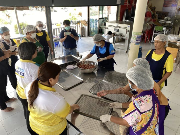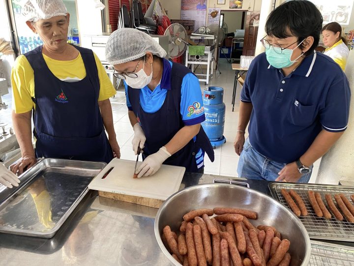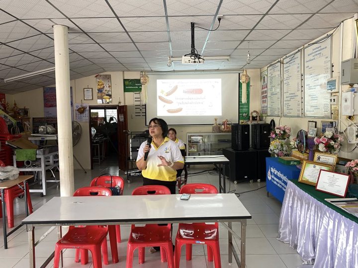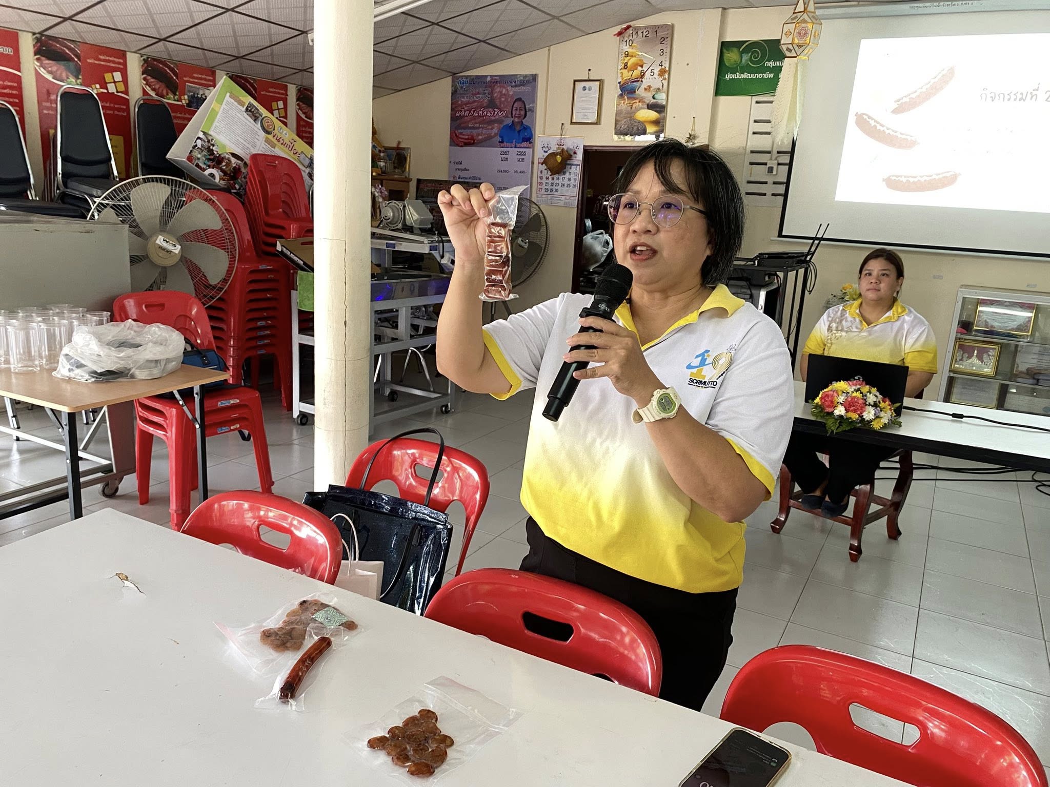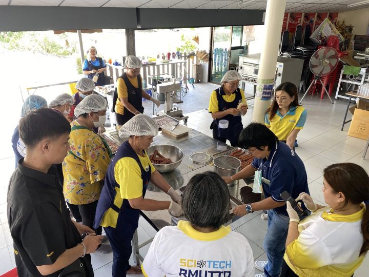 เมื่อวันที่ 23 มิถุนายน 2568 คณะวิทยาศาสตร์และเทคโนโลยี จัดโครงการบริการวิชาการเพื่อพัฒนาคุณภาพชีวิตและเศรษฐกิจชุมชนต้นแบบ BCG ของมหาวิทยาลัยอย่างยั่งยืน กิจกรรมที่ 2 กิจกรรมการพัฒนาผลิตภัณฑ์กุนเชียงพร้อมรับประทาน (งบประมาณเงินรายได้ สถาบันวิจัยและพัฒนา) ณ วิสาหกิจชุมชนแม่บ้านเกษตรเนินกระบก ตำบลบ่อวิน อำเภอศรีราชา จังหวัดชลบุรี โดยมี ผู้ช่วยศาสตราจารย์สุพัตรา พูลพืชชนม์ และอาจารย์ ดร.วัลวรางค์ ลิ้มสุคนธ์และอาจารย์ประจำคณะวิทยาศาสตร์และเทคโนโลยี บรรยายและปฏิบัติ ในหัวข้อเรื่อง การพัฒนาผลิตภัณฑ์กุนเชียงบรรจุกระป๋อง กุนเชียงพร้อมรับประทานแก่สมาชิกวิสาหกิจชุมชน