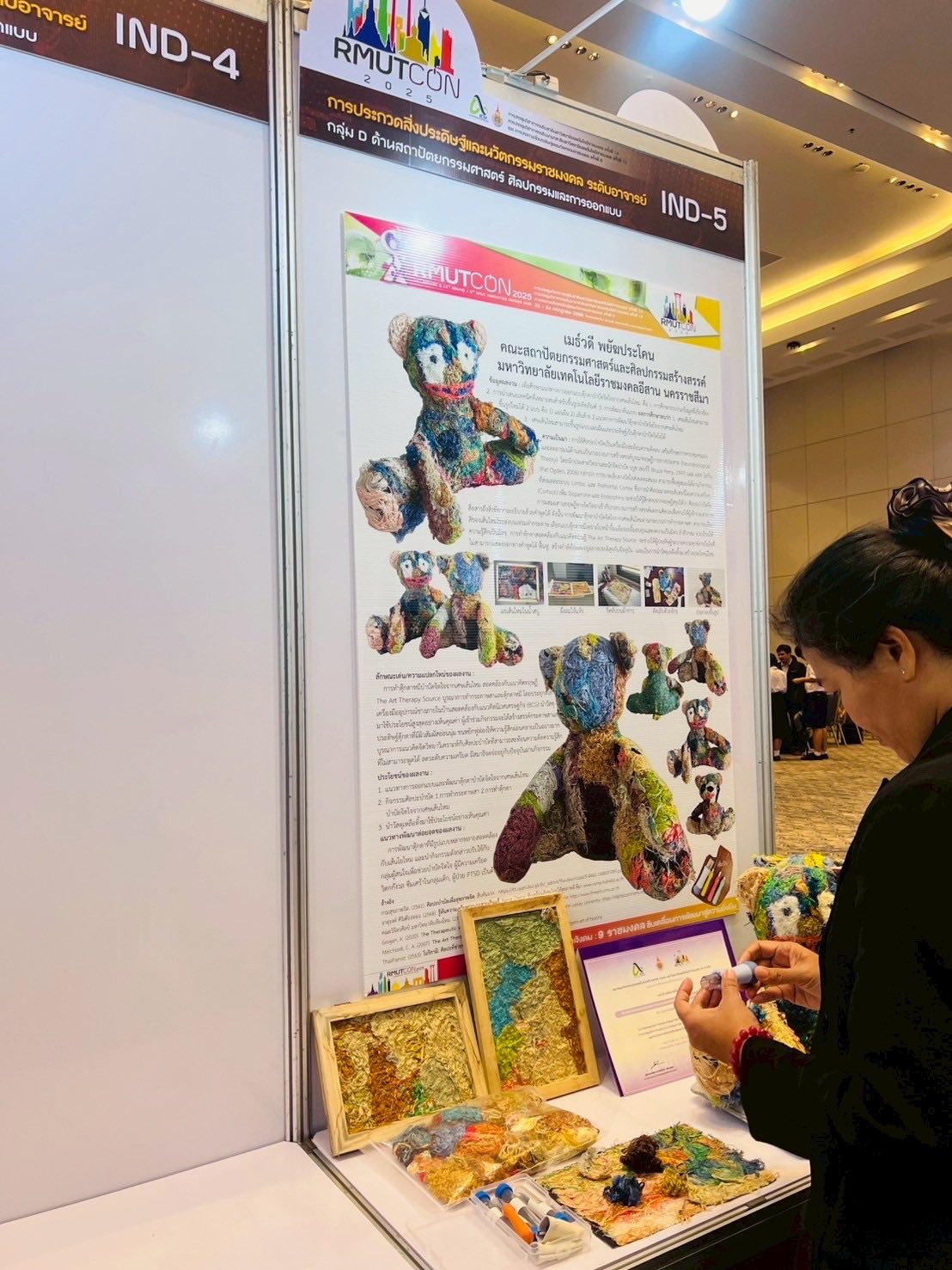• ผศ.ดร.สมทบ สันติเบ็ญจกุล และคณะ เรื่อง “ผลิตภัณฑ์แปรรูปจากผ้าทอมือย้อมสีธรรมชาติจากไผ่”