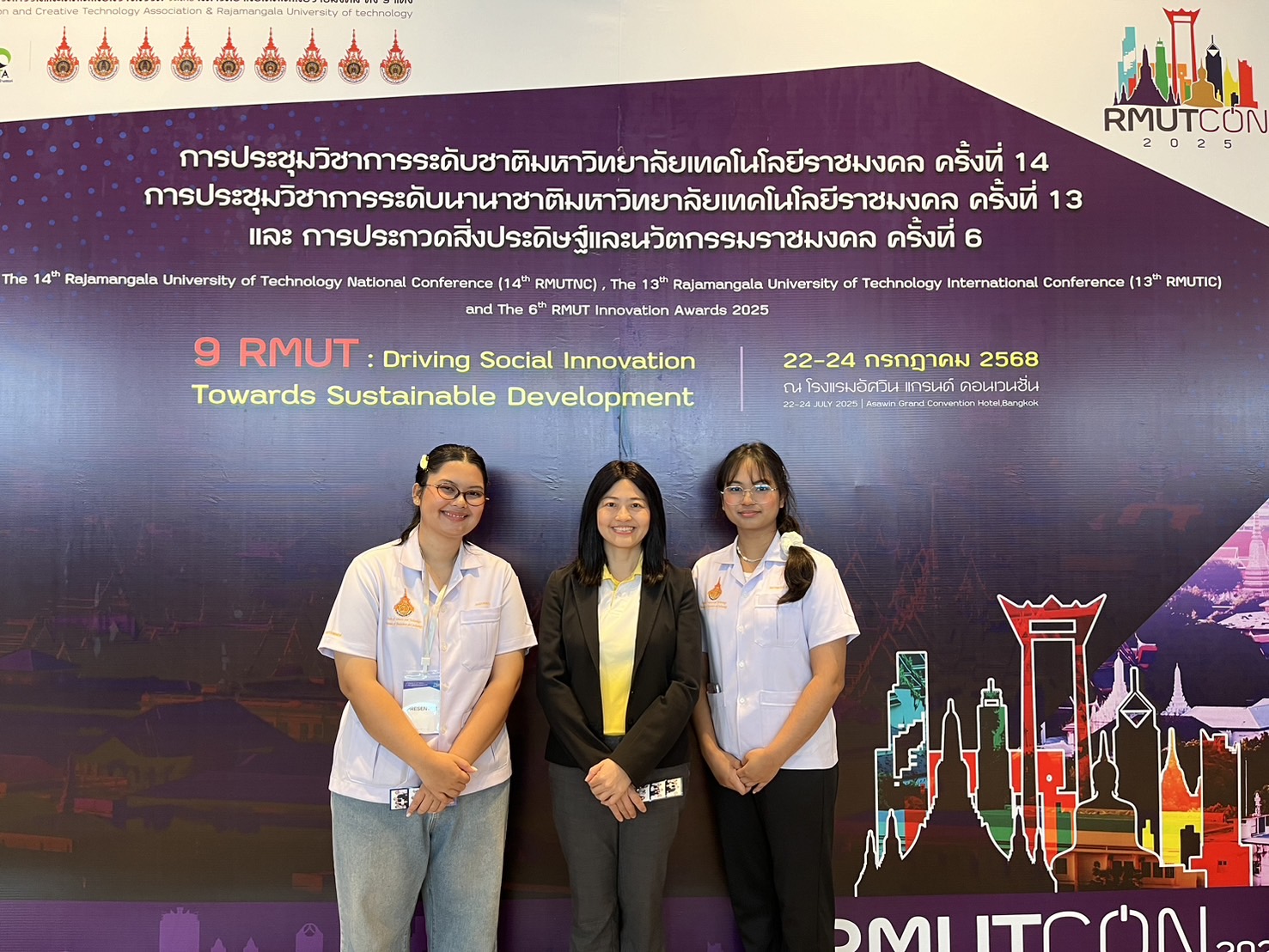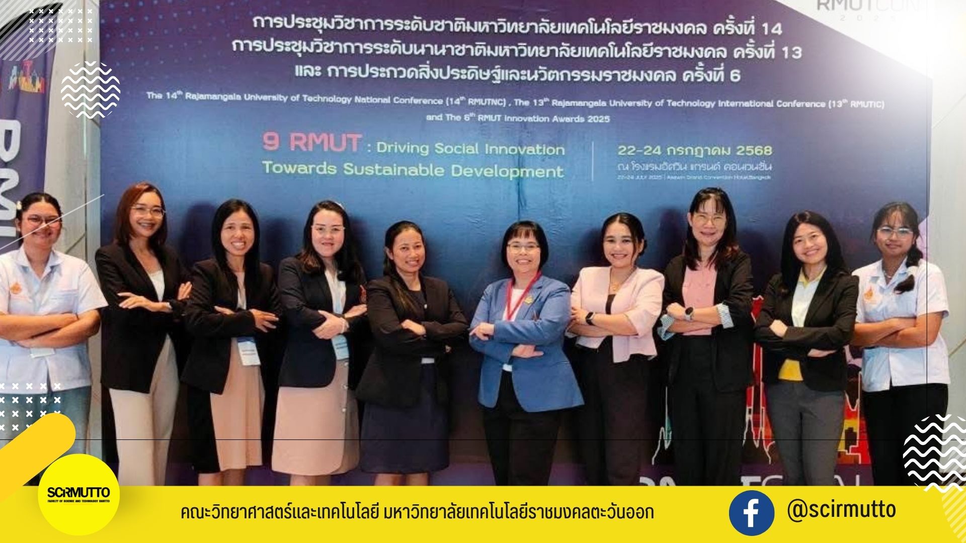 คณาจารย์และนักศึกษาจาก คณะวิทยาศาสตร์และเทคโนโลยี มหาวิทยาลัยเทคโนโลยีราชมงคลตะวันออก เข้าร่วมแสดงผลงานในการประชุมวิชาการระดับชาติ RMUTCON 2025 ซึ่งจัดขึ้นระหว่างวันที่ 22 – 24 กรกฎาคม 2568 ณ โรงแรมอัศวิน แกรนด์ คอนเวนชั่น หลักสี่ กรุงเทพฯ ภายใต้แนวคิด “นวัตกรรมเพื่อสังคม: 9 ราชมงคล ขับเคลื่อนการพัฒนาสู่ความยั่งยืน”