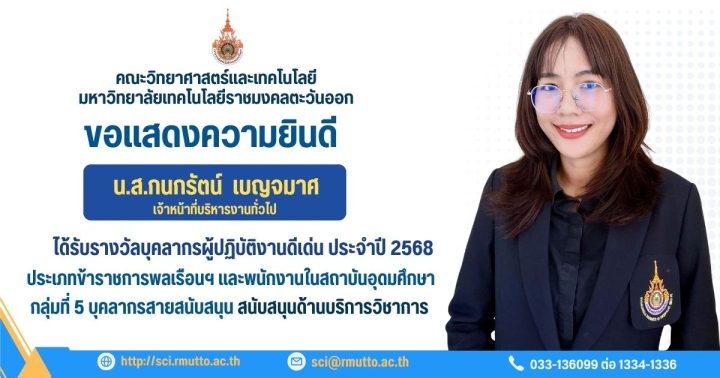 คณะวิทยาศาสตร์ฯ มทร.ตะวันออก จัดพิธีรับมอบถ้วยรางวัลพระราชทาน กรมสมเด็จพระเทพฯ ฉลองชัยชนะเลิศระดับประเทศ ด้านการออกแบบบรรจุภัณฑ์เพื่อสังคมที่ยั่งยืน ปี 2568