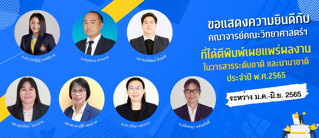 อแสดงความยินดีกับคณาจารย์คณะวิทย์ฯ ที่ได้รับการตีพิมพ์ในวารสารระดับชาติและนานาชาติ ระหว่าง ม.ค.-มิ.ย.2565